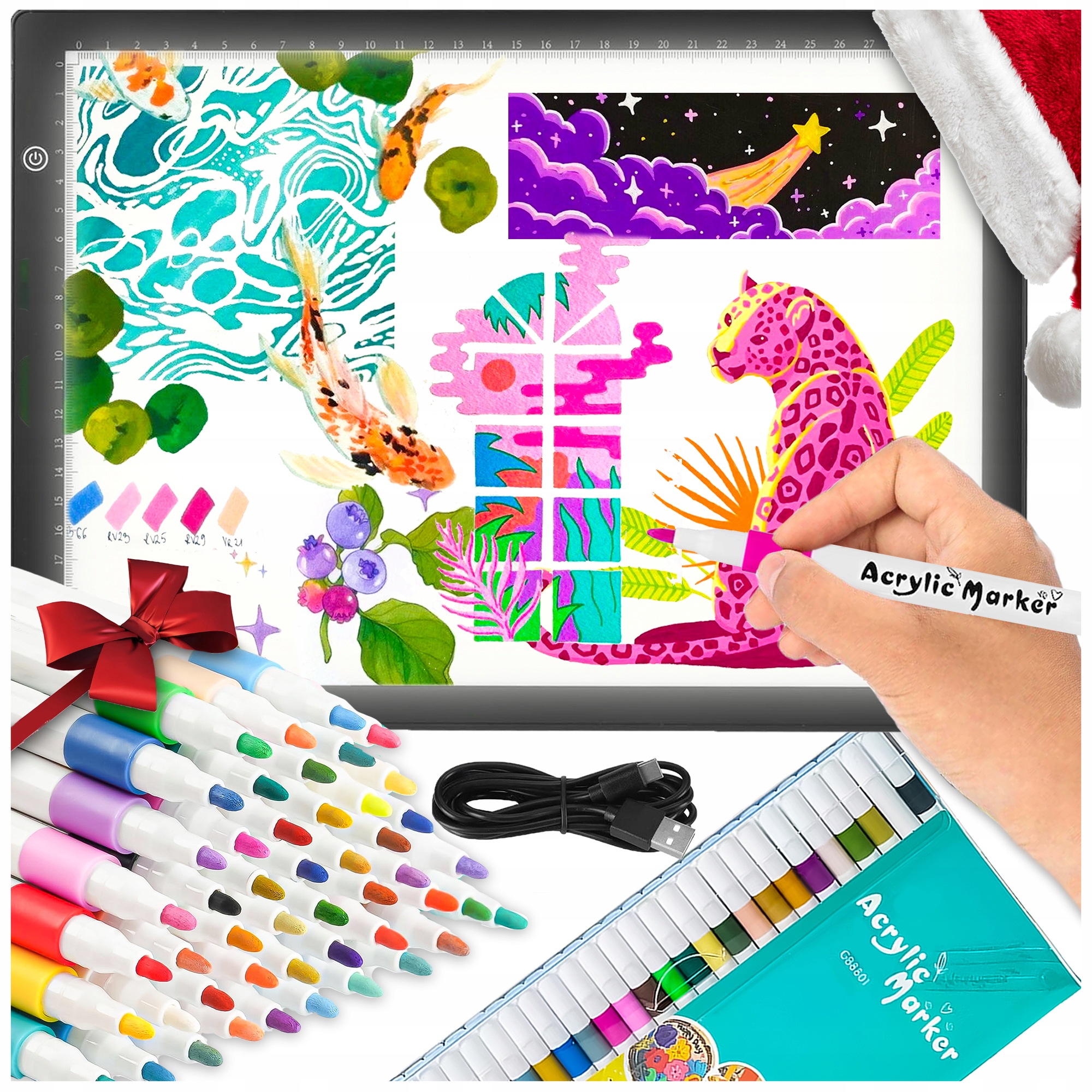 ДОШКА ДЛЯ МАЛЮВАННЯ A4 ПЛАНШЕТ ДЛЯ МАЛЮВАННЯ З СВІТЛОДІОДОМ КАЛЬКА + 48 МАРКЕРІВ