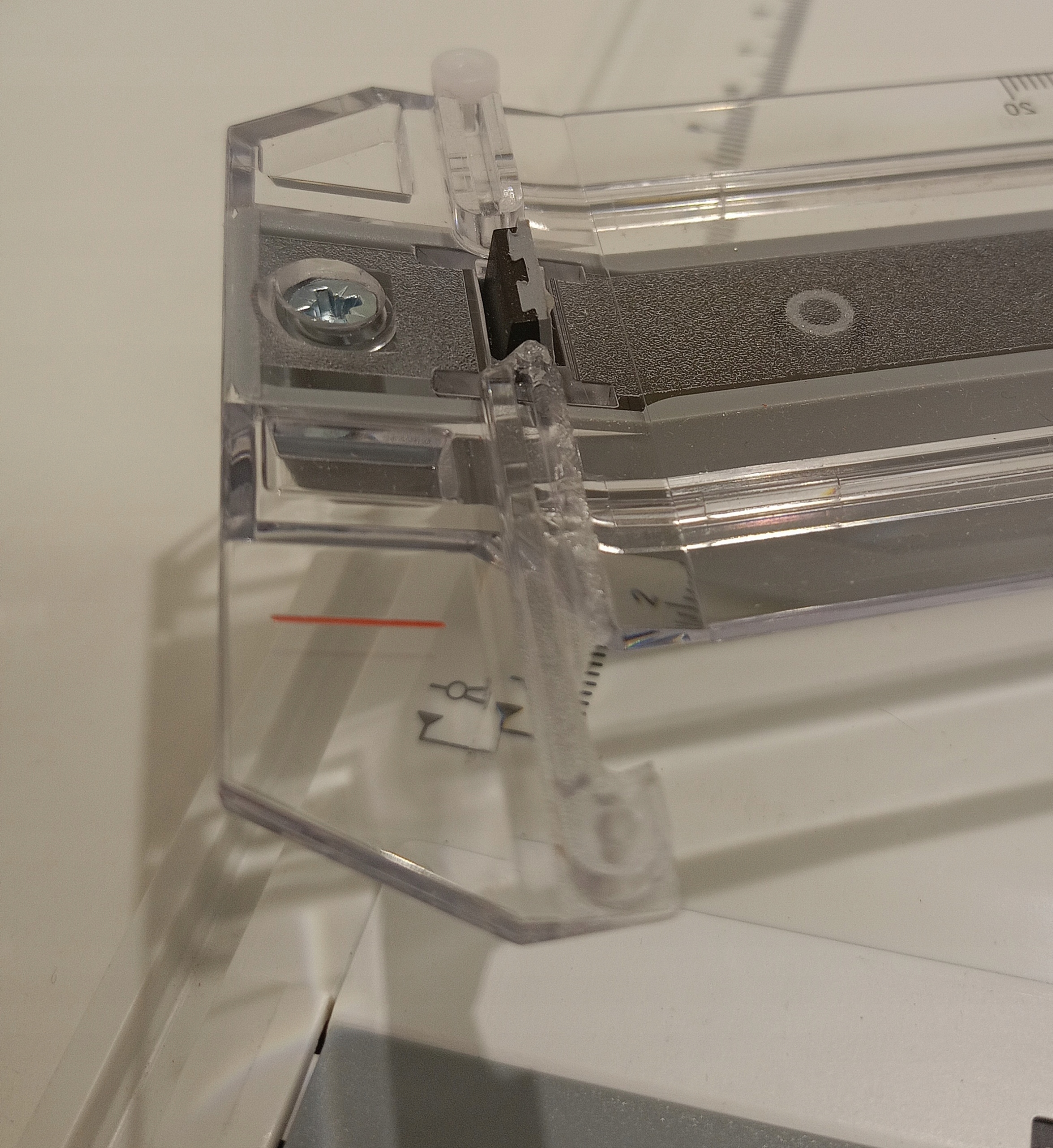 - Технологія ковзання на основі 2-точкової направляючої забезпечує помітно легше переміщення рейки. Рухливі ніжки для позиціонування нахилу та магнітна затискна рейка з віконцями для контролю ступеня леза