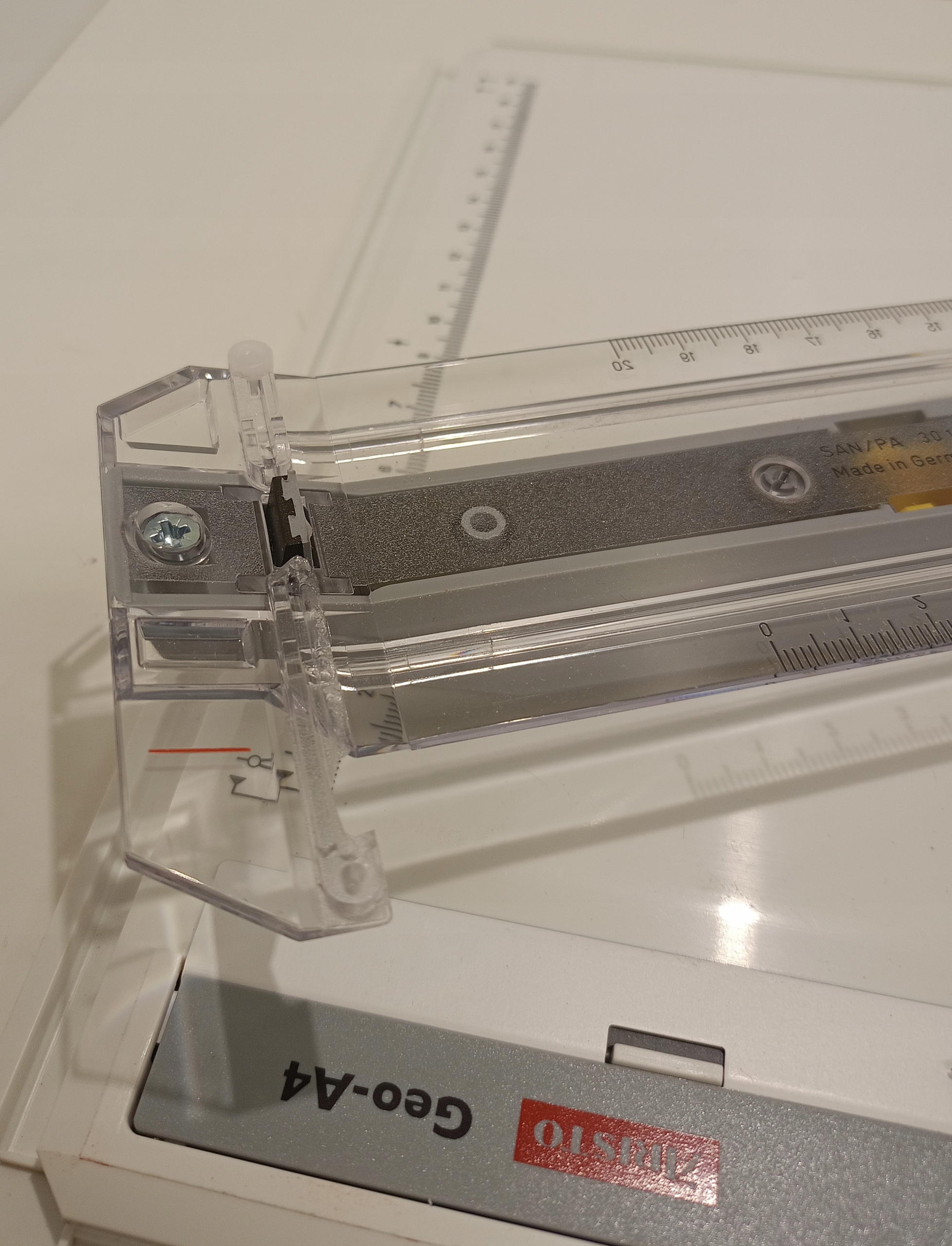 - Система «L» дозволяє малювати над рейкою, також у нижній частині аркуша, трикутник для швидкого малювання Aristo 7090 включено. Зроблено в Німеччині