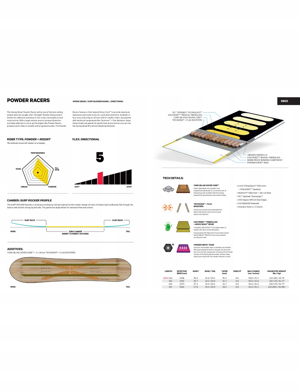 Сноубордна дошка гонщик з пружиною канікулами Capita є дошкою від серії сноубордів snowcraft ультра -обріжте серії сноубордингу, натхненного серфінгом, створеного у співпраці з виконавцем, сноубордингом та змазою всієї колекції весни - Корі Сміта . Кожна дошка з цієї лінії має інноваційну, супер плаваючу ядро наведення та унікальну форму, призначену для вирізання та плавання в найглибшому вниз.