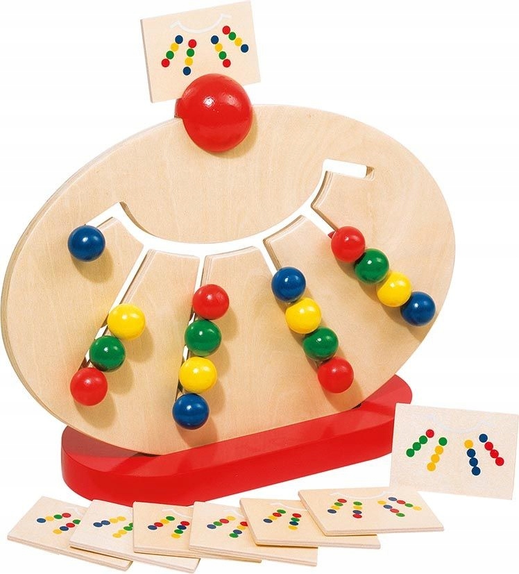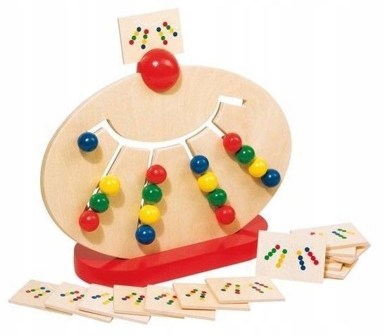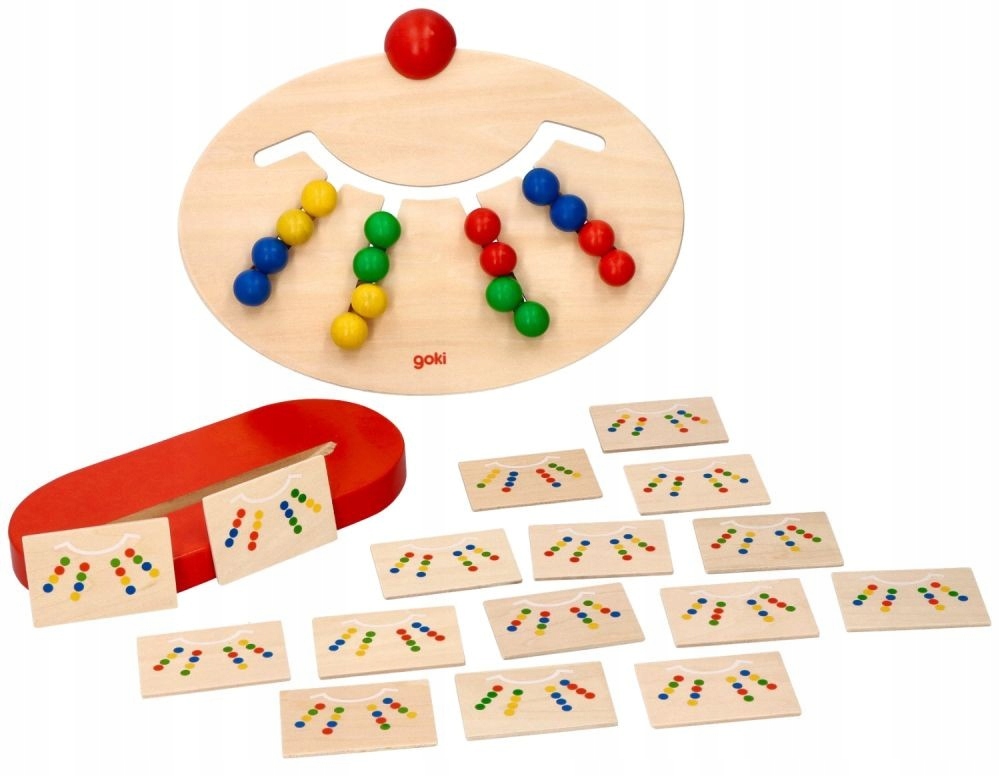 Пазл складається з дерев’яної дошки з вирізаними напрямними, в які вмонтовано 16 різних елементів чотирьох кольорів – жовтого, зеленого, червоного та синього. У комплекті з дошкою є 16 дощок із зразками візерунків, які дитина повинна спробувати розташувати на дошці, відповідним чином пересуваючи дерев’яні елементи. Дошка стоїть вертикально на червоній основі, а одна з дощок, яку слід імітувати на дошці, розташована вгорі.