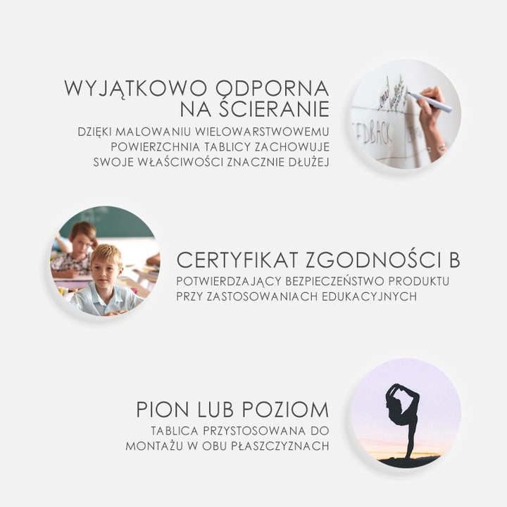 Магнітні сухостираючі дошки MemoBe мають сертифікат відповідності, який підтверджує, що продукт відповідає вимогам стандарту PN-EN 14434:2010, тобто він безпечний під час встановлення та використання. Продукт має позначку B (безпека).