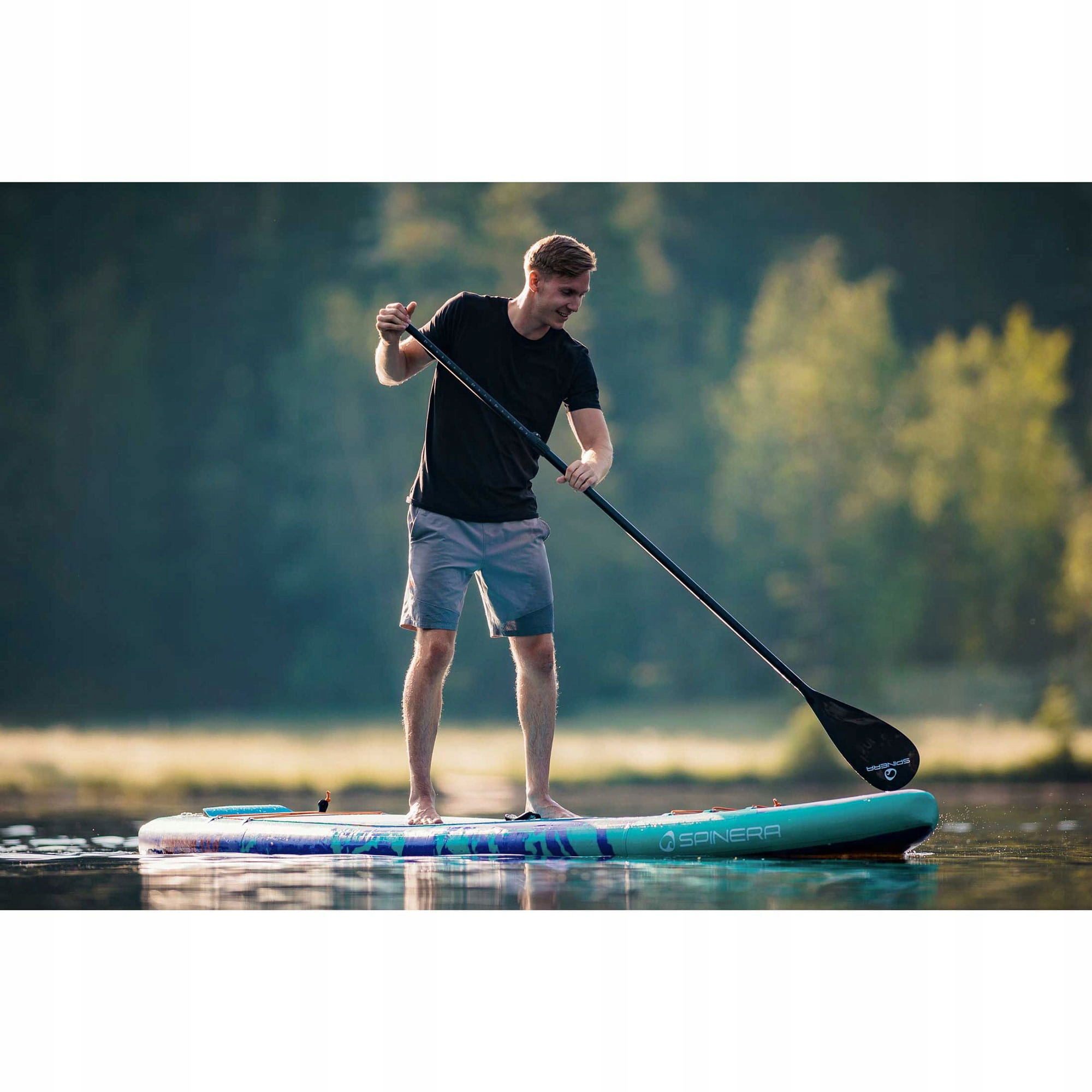 Spinera Suptour 13'0" - це дуже легка надувна SUP-дошка з категорії TOURING, виготовлена за технологією DL ULT = двошарова, зварена за допомогою Технологія Ultra Light - вага дошки всього 9,9 кг. Виробник пропонує максимальне навантаження 180 кг, але, як показує наш досвід, дошка найкраще буде плавати з гребцем, вага якого не перевищує 125 кг. Цей великий Sports TOURING має ширину 79 см, довжину 396 см і висоту 15 см. Дошка призначена для більш важких людей, які вже мають досвід катання на паддлборді та шукають технологічно просунуту довгу дошку для туристичних поїздок або спортивних тренувань.