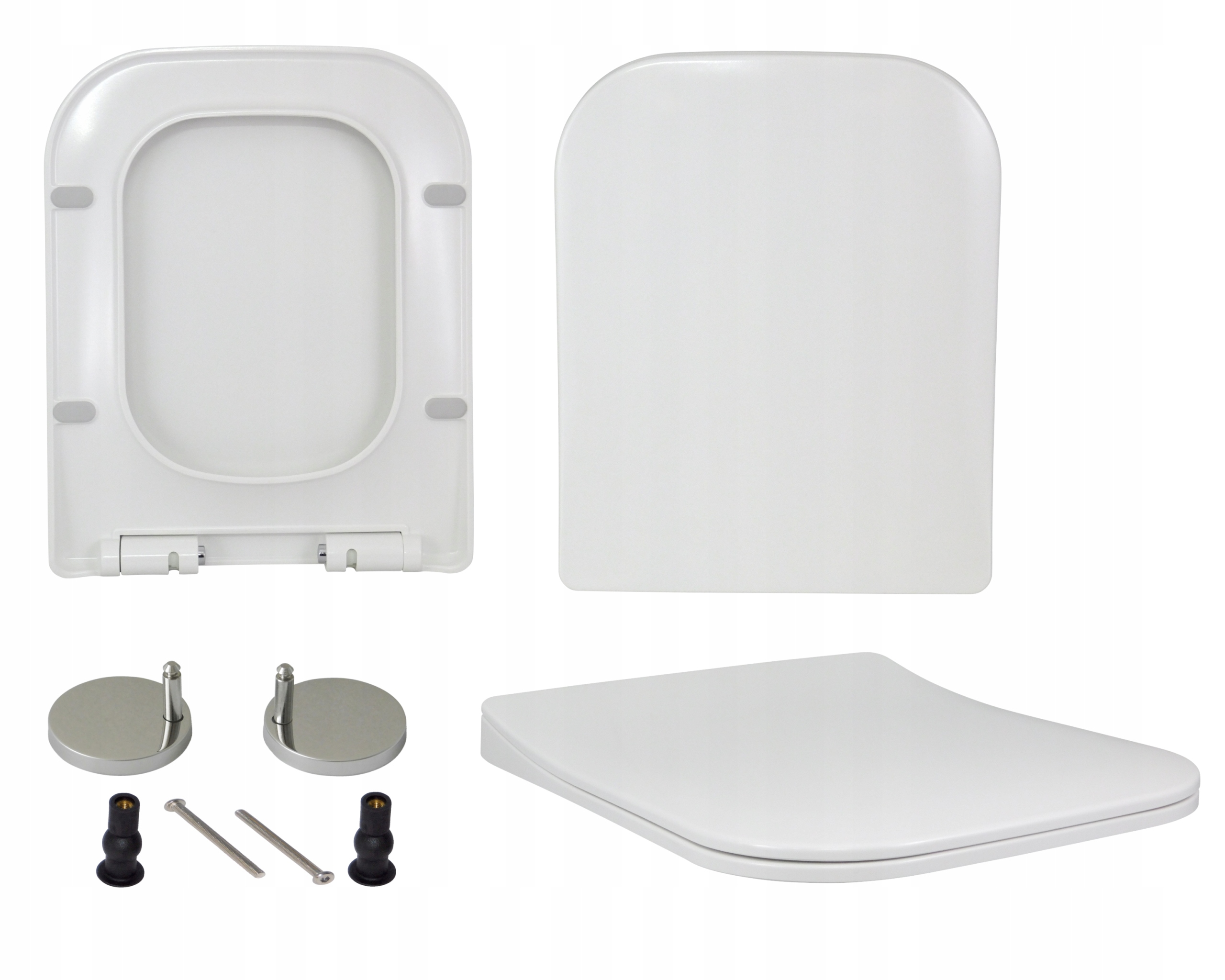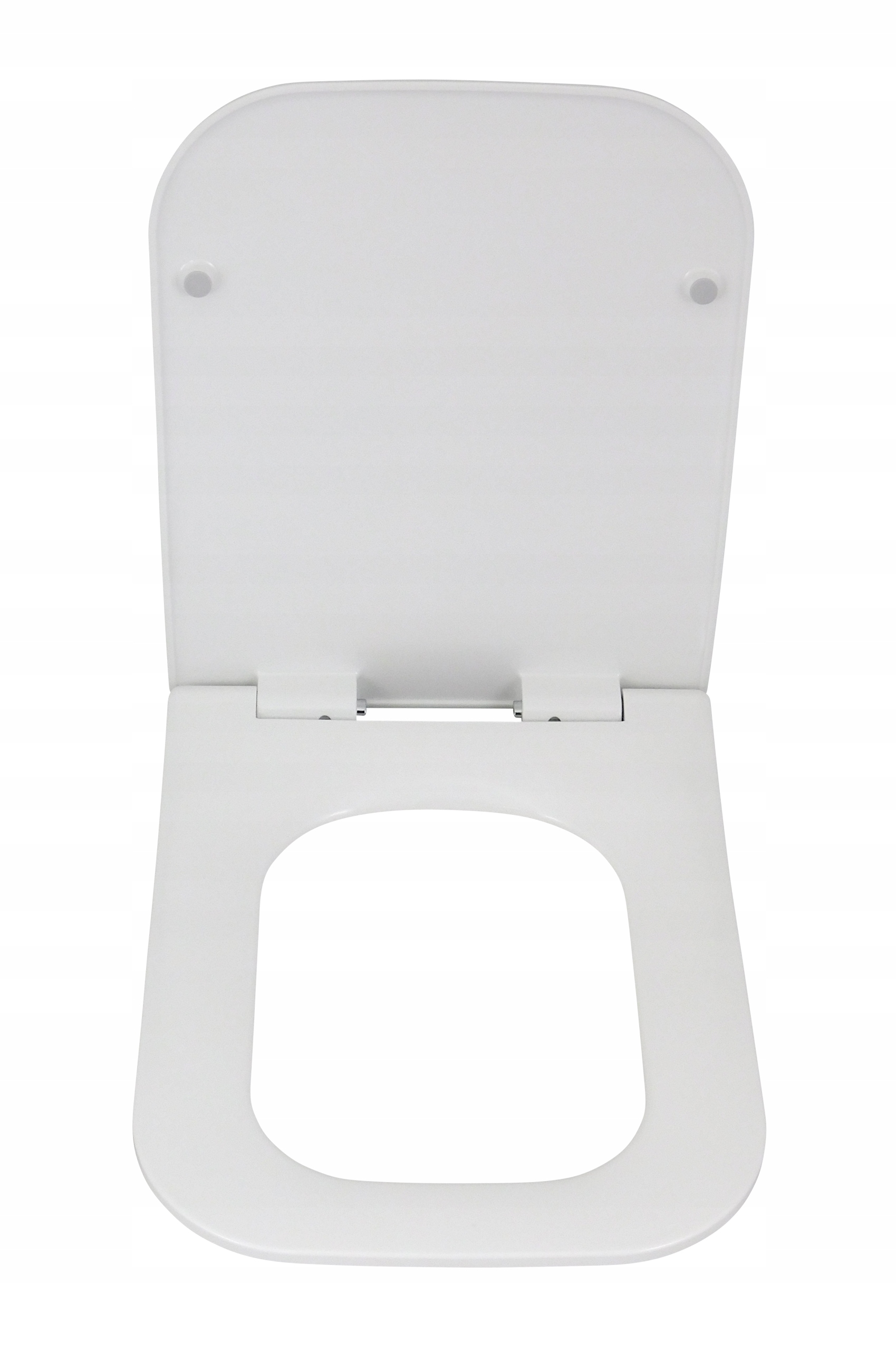 Красиве, міцне сидіння для унітазу, повільне закривання, ПРЯМОКУТНЕ, з системою легкого від'єднання, верхнє кріплення, що гарантує стійкість сидіння на унітазі, антибактеріальні властивості, дюропласт, найтвердіший матеріал, колір БІЛИЙ
