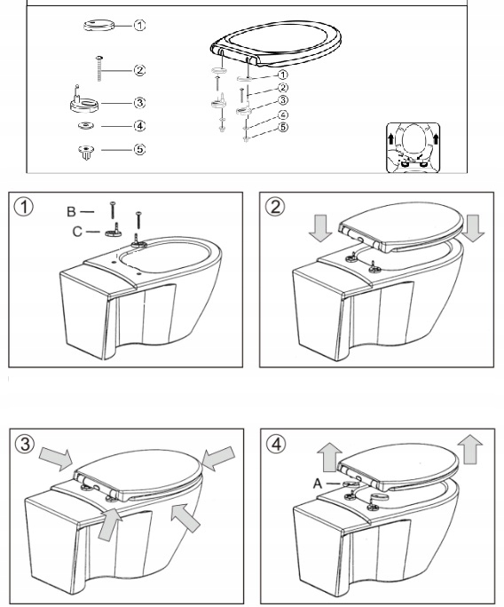 Сидіння для унітазу є різновидом гігієнічного виробу. Перш ніж зняти захисну плівку, спробуйте сидіння на унітазі. Зняття захисної плівки унеможливить повернення товару.