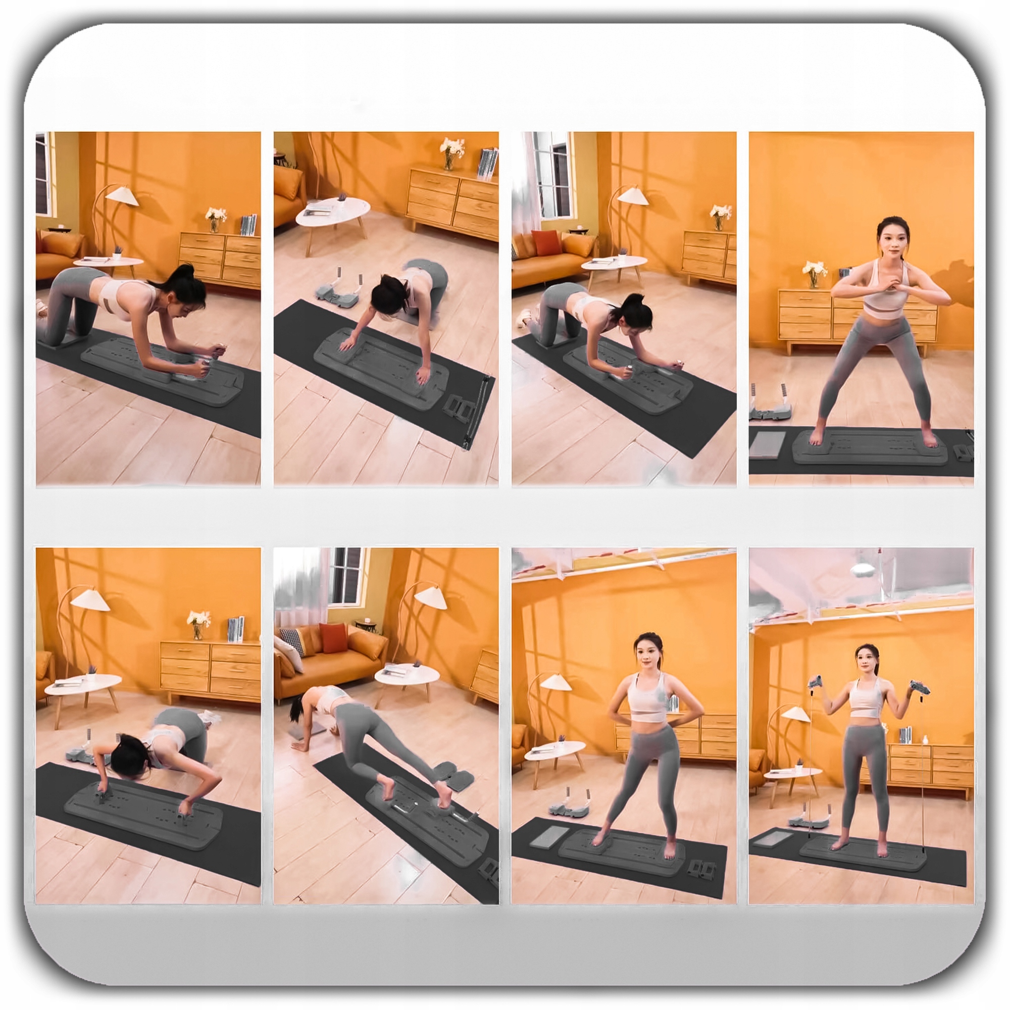 Цей набір вирізняється не лише своєю компактністю, але, перш за все, необмеженими можливостями для тренувань, які пропонують інноваційні розсувні платформи. Ці спеціальні повзунки можна використовувати як під ступнями, так і під ліктями чи колінами. Використовуючи їх стоячи або в опорі, ви задіюєте глибокі стабілізуючі м’язи (CORE) і ефективно формуєте живіт, ноги та сідниці. Ви можете виконувати динамічні випади, альпіністи та вправи для бічних м’язів, які інтенсифікують спалювання жиру та зміцнюють силу – так само, як із професійним обладнанням Pilates Reformer, але в комфорті власного дому. Це гарантія того, що кожне тренування буде викликом і кроком до кращої фігури!