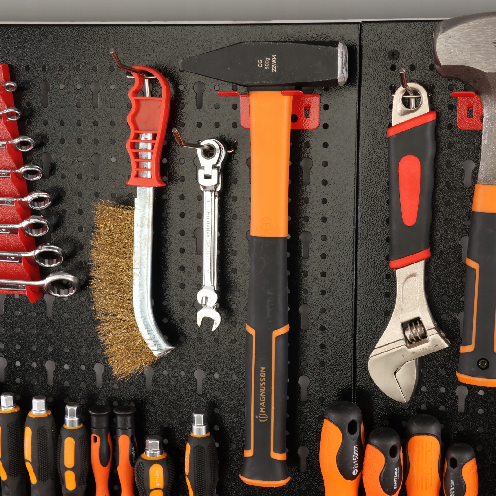 - горизонтальний металевий тримач 260х35 мм для викруток - розміщений на дошці