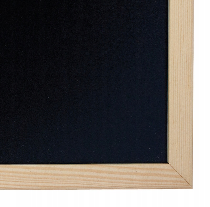 Крейдяна дошка чорного кольору, розмір: 40х30 см в дерев'яній, сосновій рамі, шириною 16 мм, товщиною 14 мм. Поверхня виготовлена з лакованого ХДФ товщиною 3 мм. Монтаж дошки вертикально або горизонтально. У набір входить губка, крейда і набір гачків для кріплення дошки. Підсилення: додаткові скоби на зворотному боці дошки.
