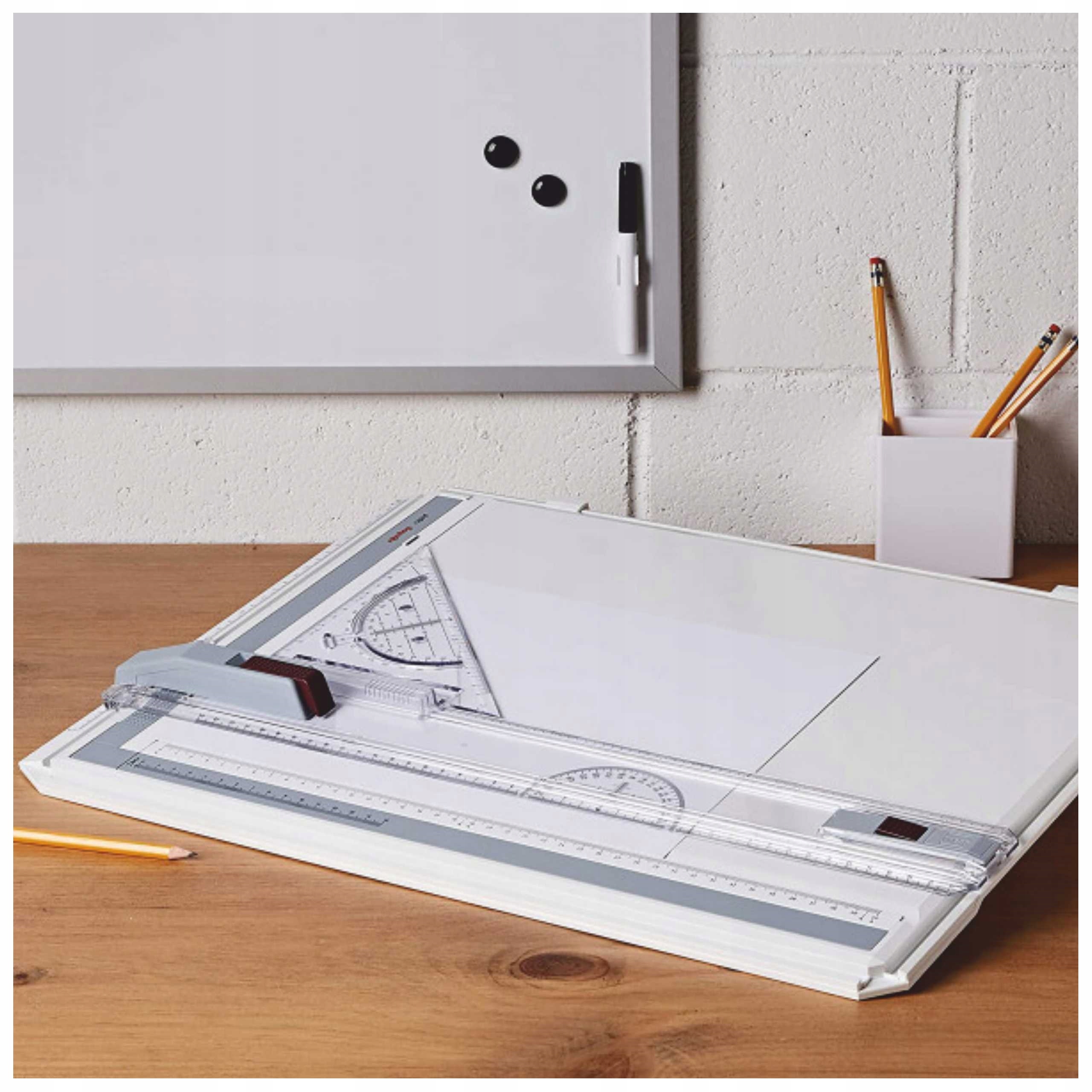 З дошкою для малювання rOtring Rapid A3 легко малювати точні ескізи. Суцільна дошка виготовлена з міцного матеріалу, що не згинається, щоб забезпечити адекватні та довготривалі результати. Напрямні та шкала для роботи з компасом забезпечують точність, а опція фіксації забезпечує стабільність. Простирадло легко утримується внизу завдяки двом магнітним затискачам. Від професійних креслярів до студентів, креслярська дошка rOtring створена для забезпечення простої та зручної роботи.