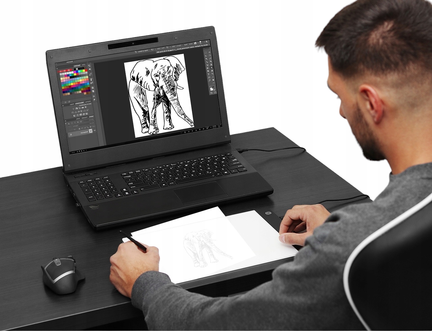 ✔️ ФУНКЦІЯ ЗАХИСТУ ОЧЕЙ – світлова дошка має фільтр, який зменшує шкідливі промені, захищаючи таким чином шлях очі проти негативного освітлення. Завдяки рівномірному освітленню ми можемо використовувати дошку багато годин, не втомлюючи очей. Як це працює? Вам просто потрібно розмістити малюнок, який ви хочете обвести, на дошці, потім покласти чистий аркуш паперу, увімкнути відповідне підсвічування та скопіювати зображення.