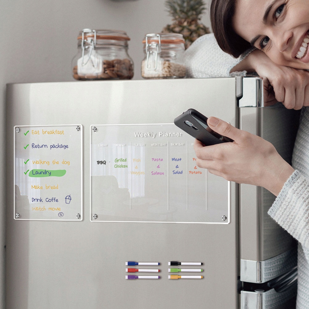 ✅ Магнітна дошка з акрилового матеріалу, практична. Ідеальний блокнот для щоденного використання. Дошку з повідомленнями про час можна наклеїти на поверхню для повторного використання, поверхню можна легко стерти, дошку для планування можна використовувати як дошку для планування, нагадування про розклад, щоб зробити своє життя більш спланованим.
