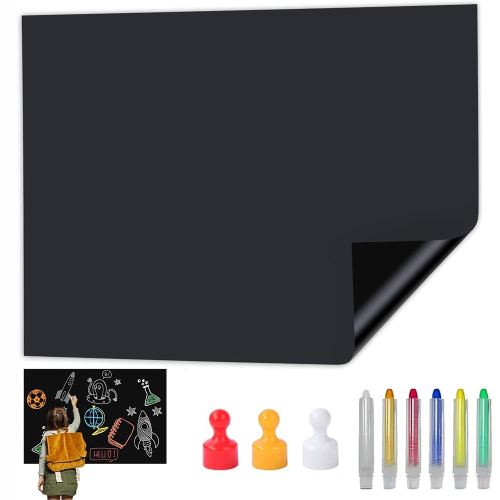 - один рулон покриває всю стіну, двері чи стару дошку, миттєво перетворюючи будь-яку гладку поверхню на місце для писання та роботи з магнітами вдома, офісі, класі, кафе чи мистецтві куточок для дітей; матове чорне покриття забезпечує чіткі крейдяні лінії та високу контрастність під будь-яким кутом.