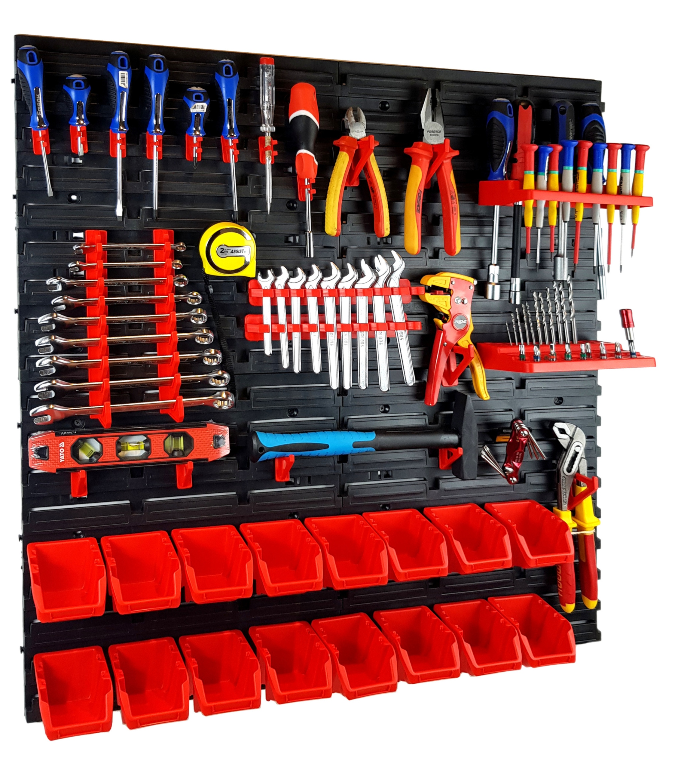 Хоч дошки, тримачі та контейнери виготовлені з пластику, вони чудово працюватимуть у професійній майстерні, а також у домашньому гаражі.