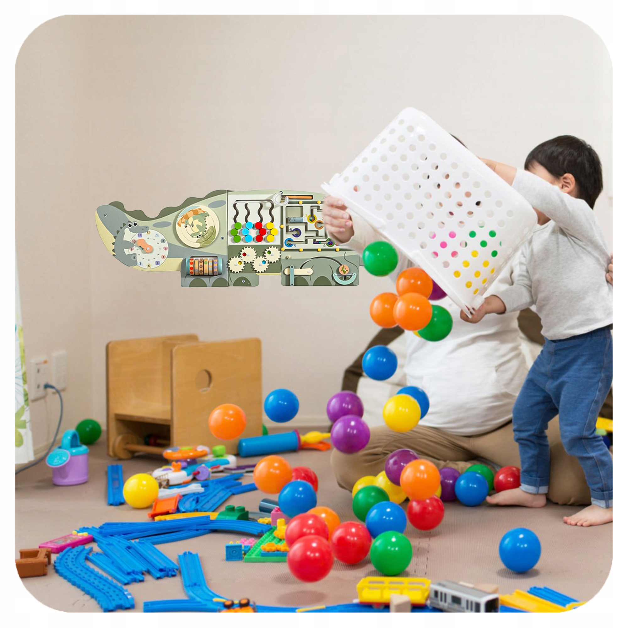 Розвиток через гру! Велика маніпуляційна дошка у формі крокодила є ідеальною пропозицією для дітей, які люблять відкривати та експериментувати. Різні елементи вчать терпінню, тренують спритність і стимулюють уяву.