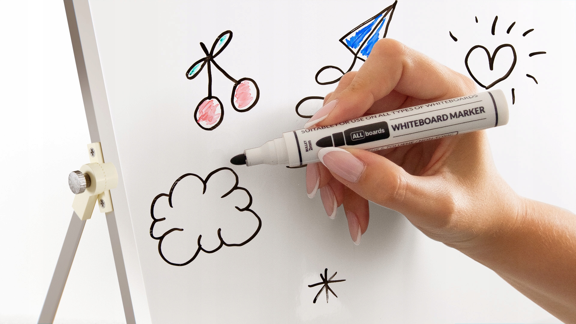 - ДВОСТОРОННИЙ, ОБРАТНИЙ - подвійна поверхня для письма забезпечує ще більше місця для важливих нотаток або малюнків. Дошка обертається, що забезпечує легкий і швидкий доступ до обох сторін - одну з них можна використовувати в офісних або навчальних цілях, іншу - для творчих ігор.