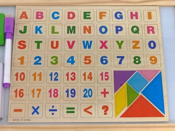 ДОШКА НАВЧАЛЬНА ДВОСТОРОННЯ + ТАНГРАМА, БУКВИ