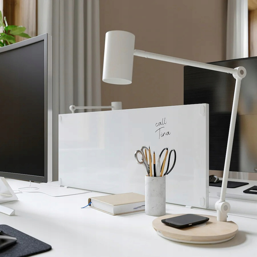 Двостороння дошка оголошень, щоб ви могли писати з одного боку та прикріплювати елементи з іншого. Легко встановити на стіл, щоб відстежувати все: від нотаток і повідомлень до списків і фотографій.