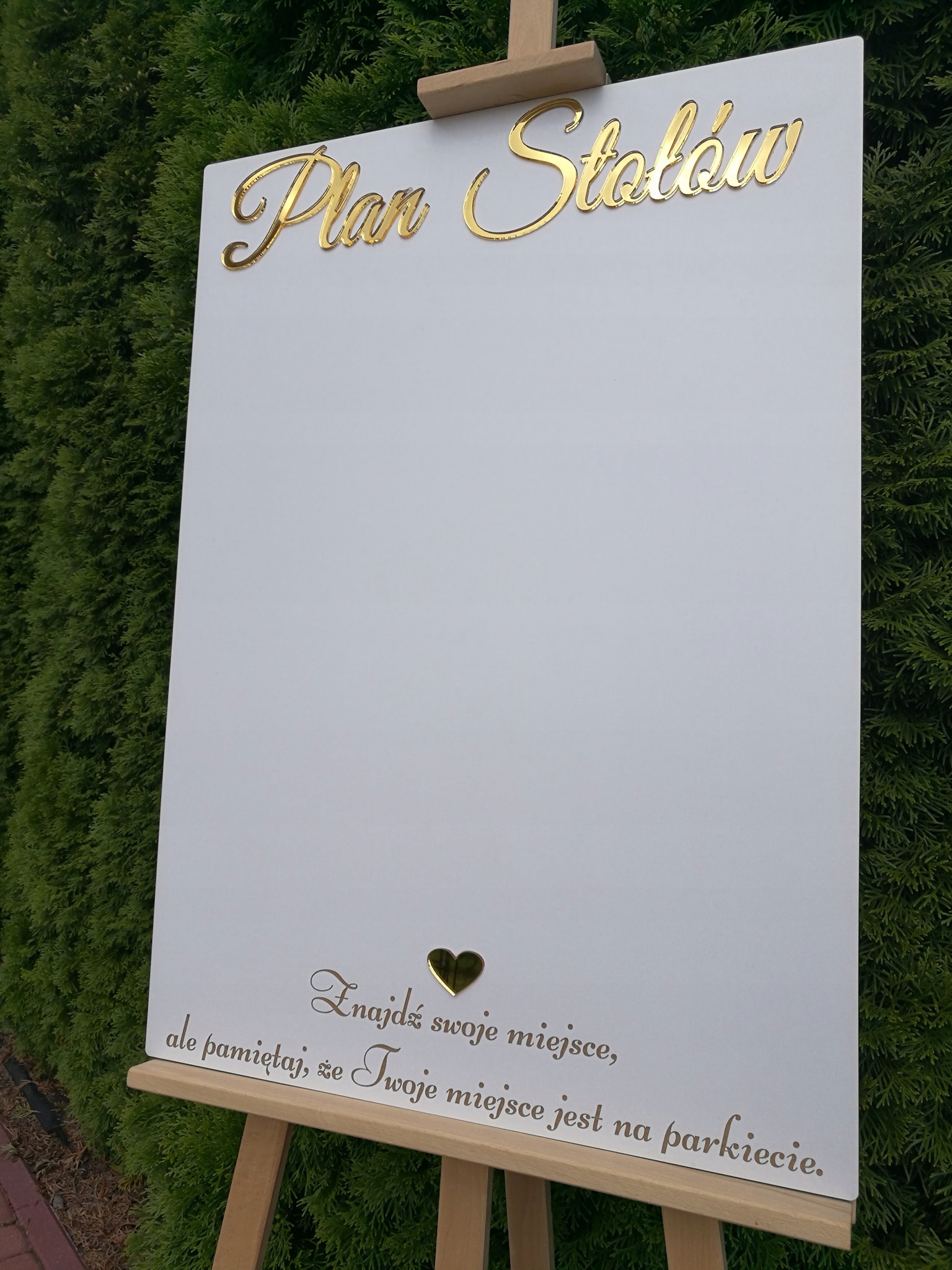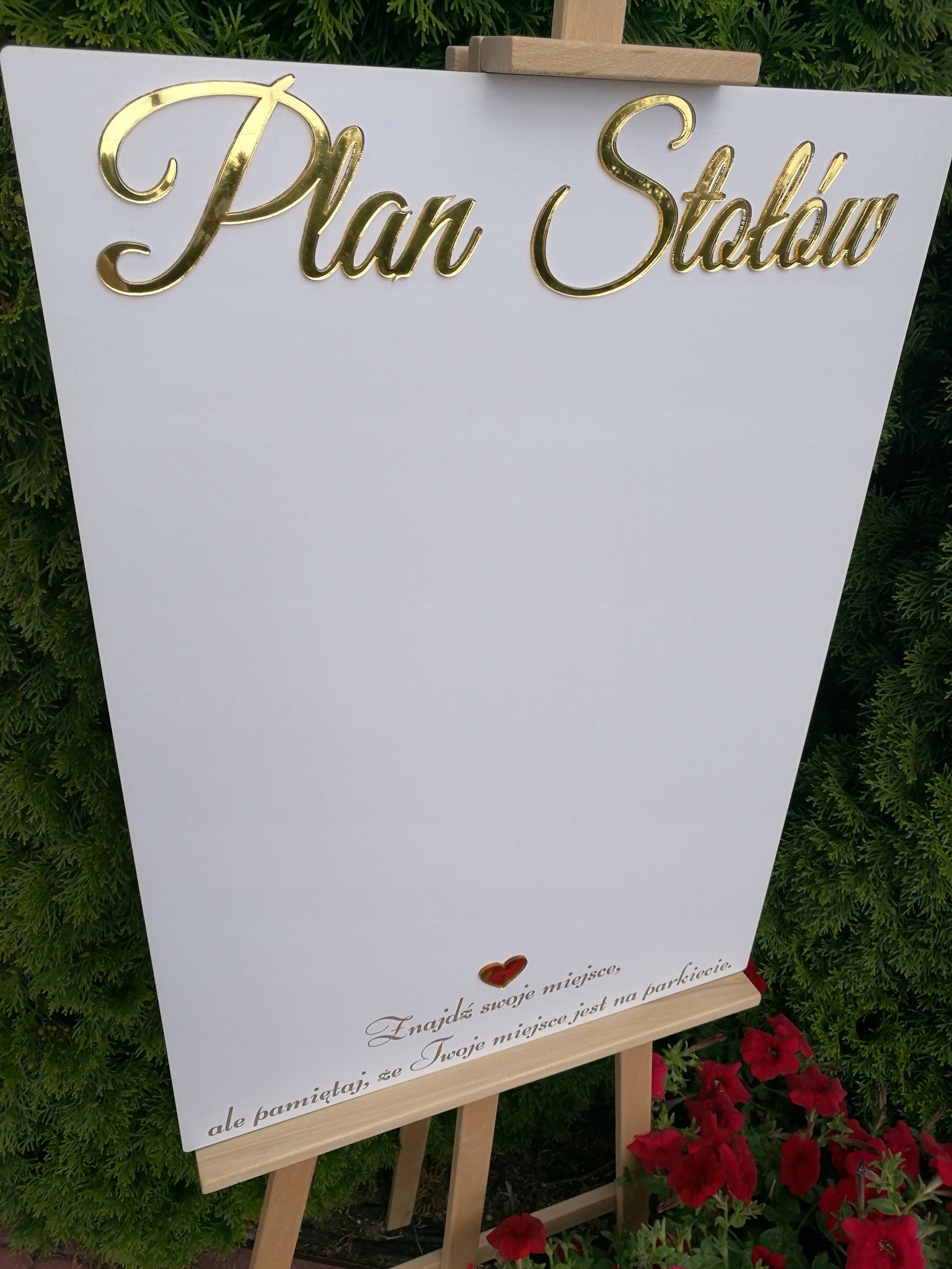 Напис Table Plan і серце дзеркального кольору золото або срібло (на вибір), а нижній напис вигравіруваний.