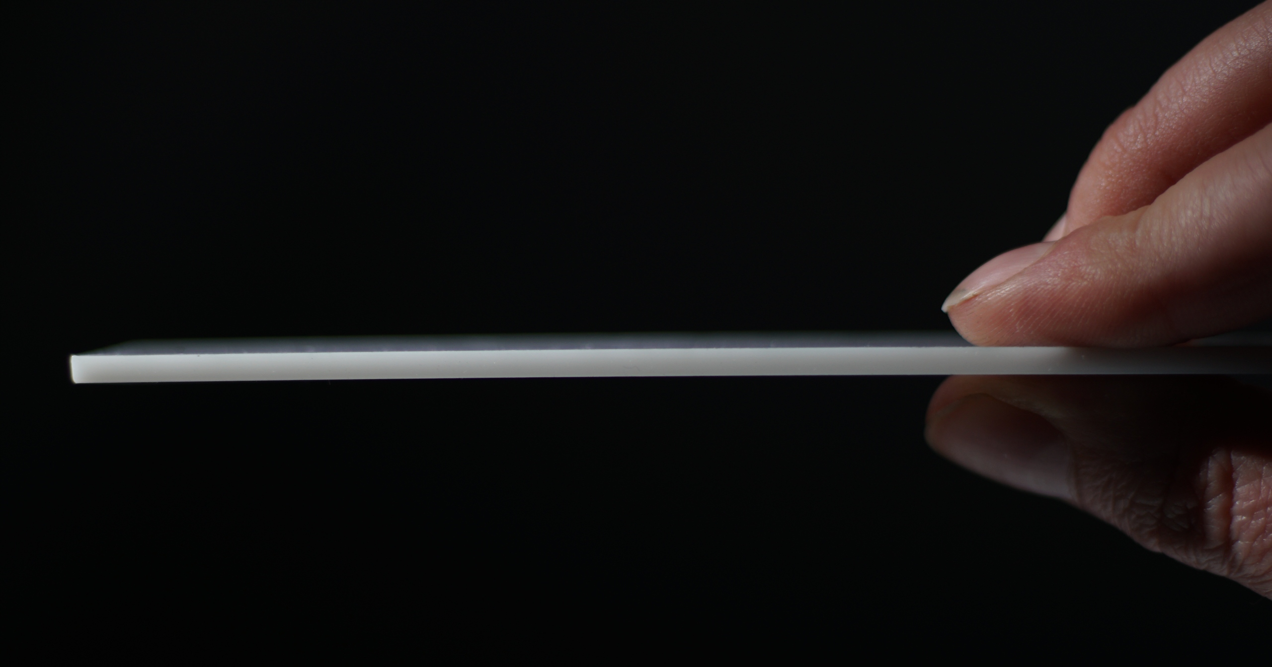 Опаловий плексиглас має 40% світлопропускання. Завдяки таким обраним параметрам оргскло «пропускає» світло, але розпізнати контури предметів з іншого боку неможливо.Не розміщуючи джерело світла з тильного боку деталі, при погляді спереду створюється враження що оргскло просто біле.