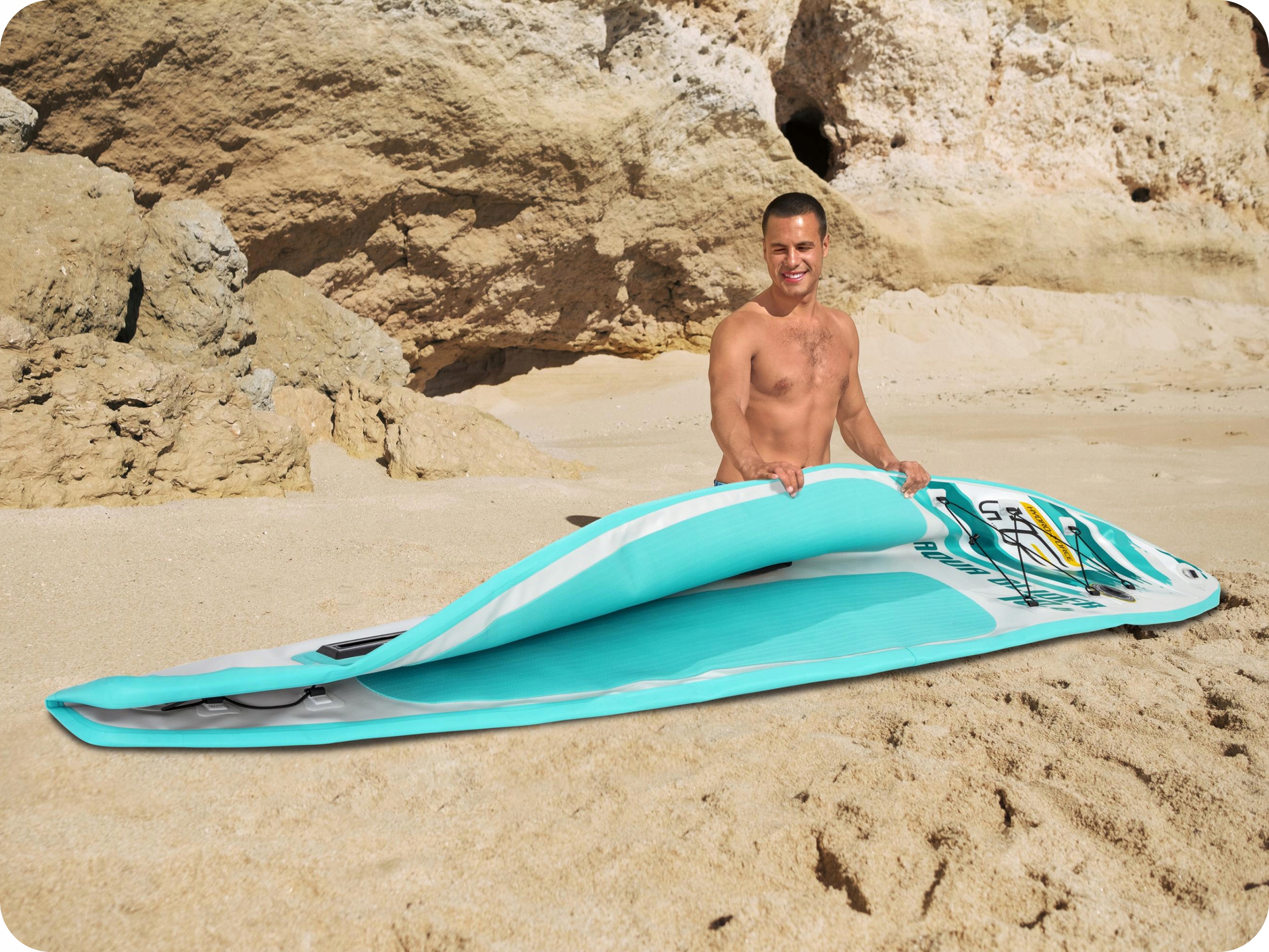 Bestway Surf Board з неперською шапкою -ідеальна пропозиція для майбутнього літа для всіх, хто любить проводити час активно. дуже стабільний, добре укладений і виготовлений з довговічних матеріалів. Його розміри - 320 х 79 х 12 див. Ідеально підходить для кожної води. Це простий у використанні , ви його швидко та ефективно заповните, а після плавання ви можете сховати його в сумку, прикріпленому до набору.
