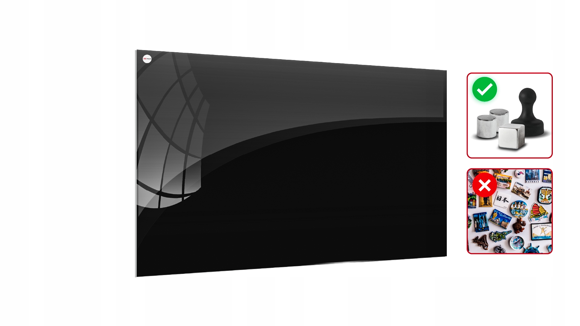 Для скляних магнітних дошок використовуйте лише спеціальні неодимові магніти з відповідною магнітною силою.