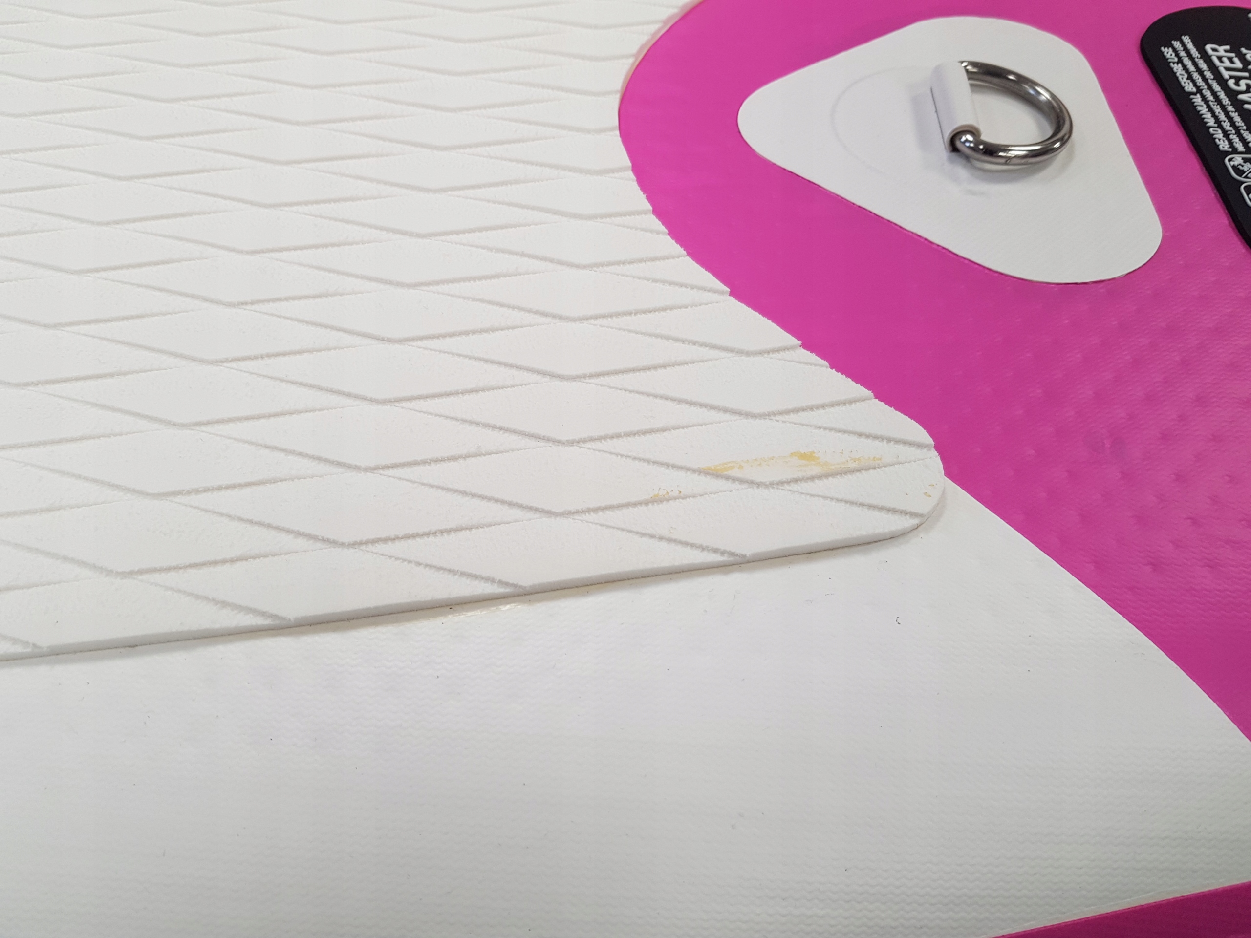 🎨 Стильний дизайн і якість виготовлення: дошка має елегантну, жіночну кольорову схему у відтінках білого та рожевого, що виділяє її серед інших моделей на пляжі. Виготовлена з щільного, багатошарового матеріалу, розкриття якого було розроблено за допомогою плоского та жорсткого застосування в надуваному стані, дошка виявляє лише непривабливий зовнішній вигляд, але також наслідки та наслідки.