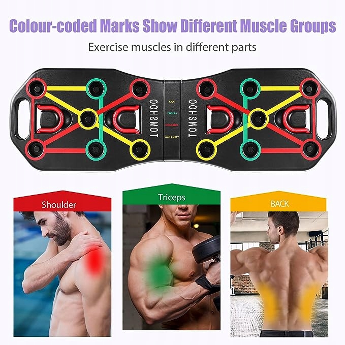 Дошка для віджимань TOMSHOO Push Up Board, складна портативна 14 в 1 з ручкою Push Up і допоміжним еластичним ременем, багатофункціональне обладнання для тренувань в залі, вдома, сила тренування, вправи