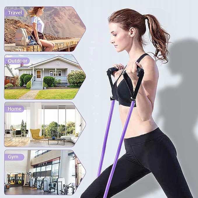 - Кілька способів тренування: вставляйте неслизькі ручки в різні кольорові позиції, щоб тренувати певні групи м’язів. Оснащений довгими латексними смужками, що дозволяють змінювати позу тіла та допомагати досягати різних цілей тренувань. Це також допомагає розігрітися перед йогою чи іншим тренуванням.
