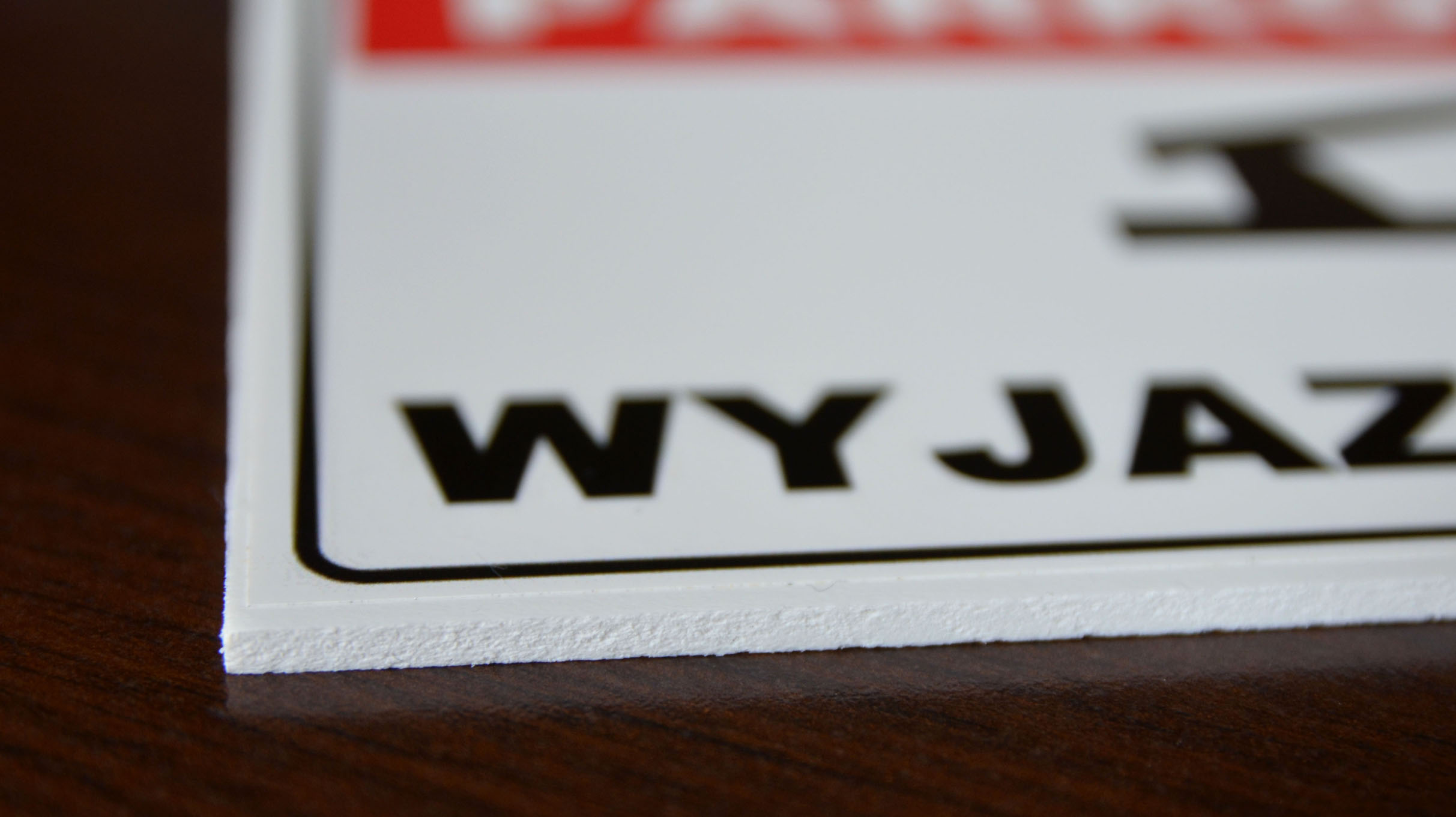 Вивіска виготовлена з ПВХ плити товщиною 3 мм (пластик, дуже міцний і легкий) і покрита ламінованою плівкою, щоб кольори на ній не вигоряли. час.