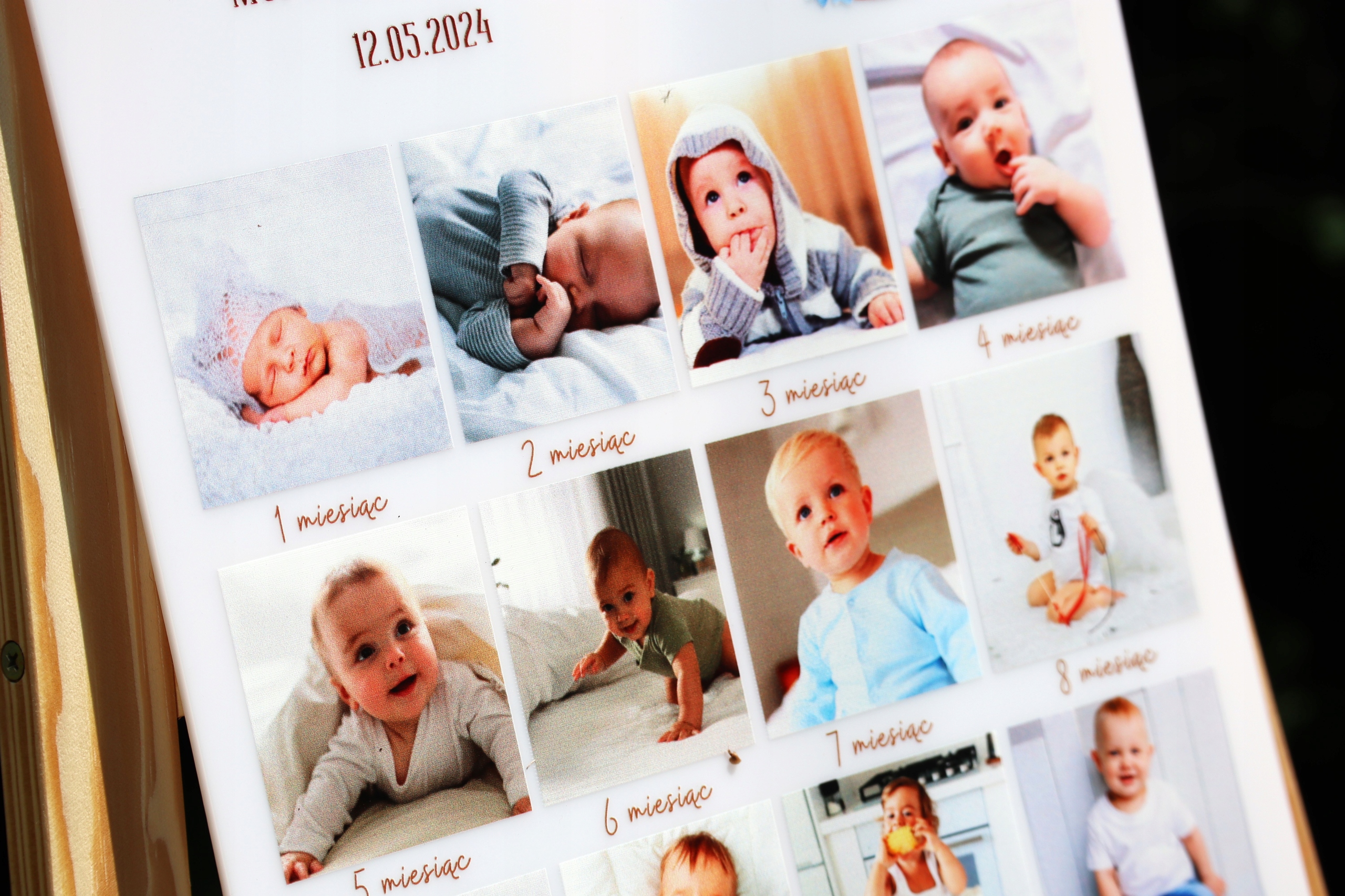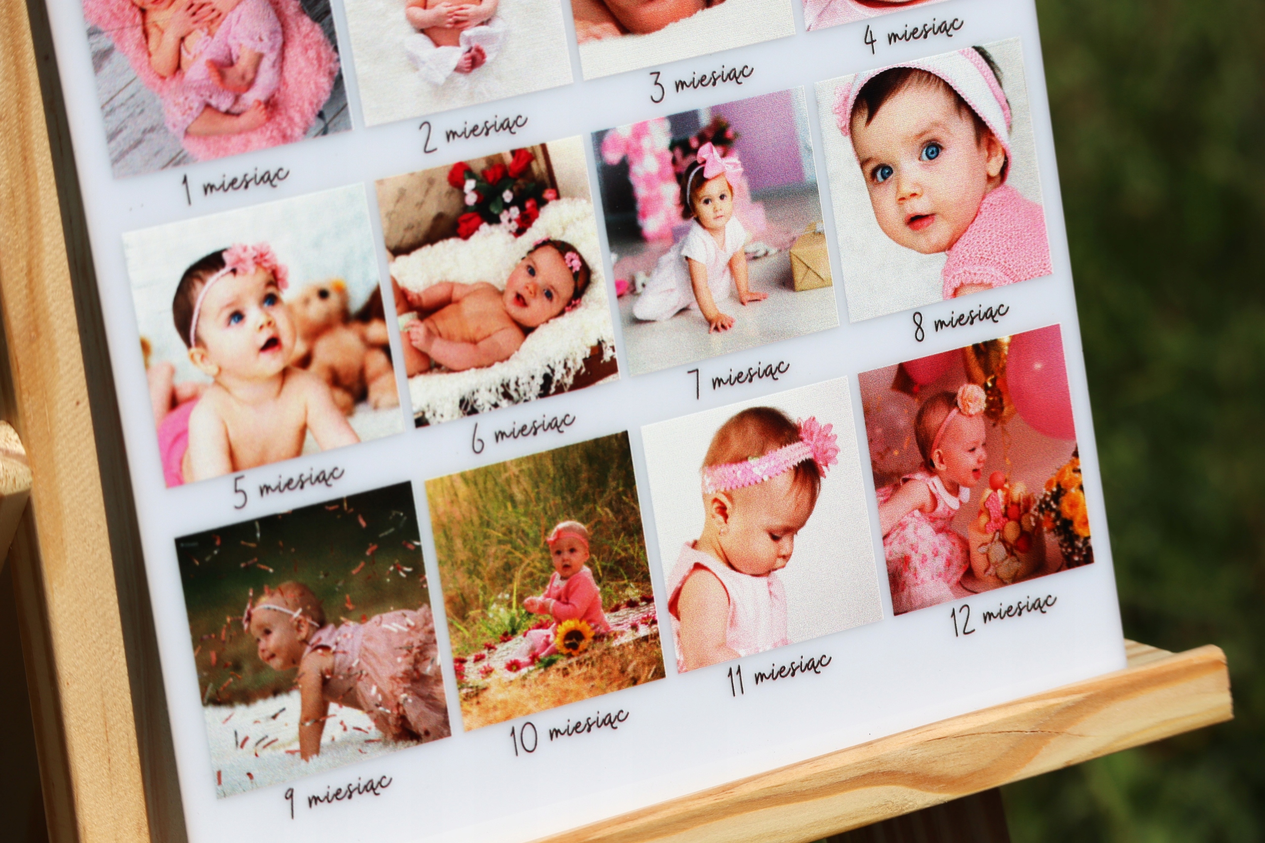 Оригінальна барвиста дошка для 12 фотографій вашої дитини! Біла дошка з акрилового скла (оргскла) з ПРИНТОМ! Вам не потрібно проявляти та приклеювати фотографії до дошки! Ми все робимо за Вас :)