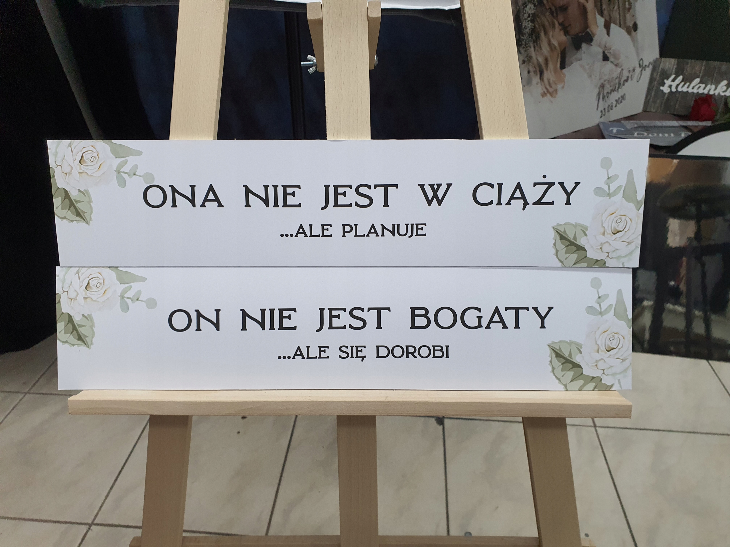 Весільні номерні знаки. Білий фон, евкаліпт і троянди. Напис: Вона не вагітна. Він не багатий, весільний бренд_art, виготовлений з високоякісної ПВХ.