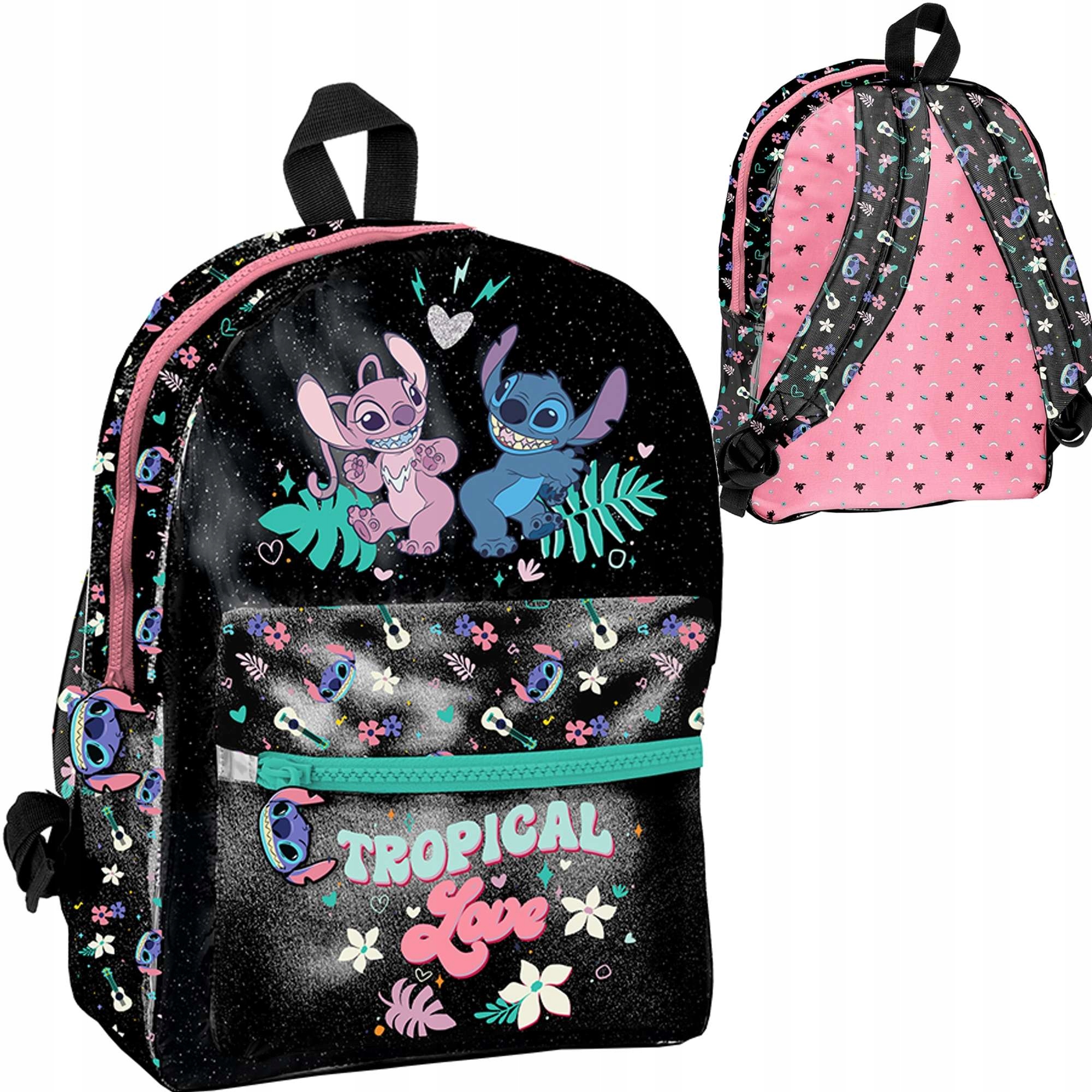 Рюкзак виконаний у чорному та рожевому кольорах, на ньому є малюнки до казки «Ліло та Стіч» та напис «Tropical Love». b> Виготовлена з матеріалів найвищої якості, легка, має зручні регульовані лямки,завдяки яким ви зможете ідеально адаптувати модель під зріст дитини.