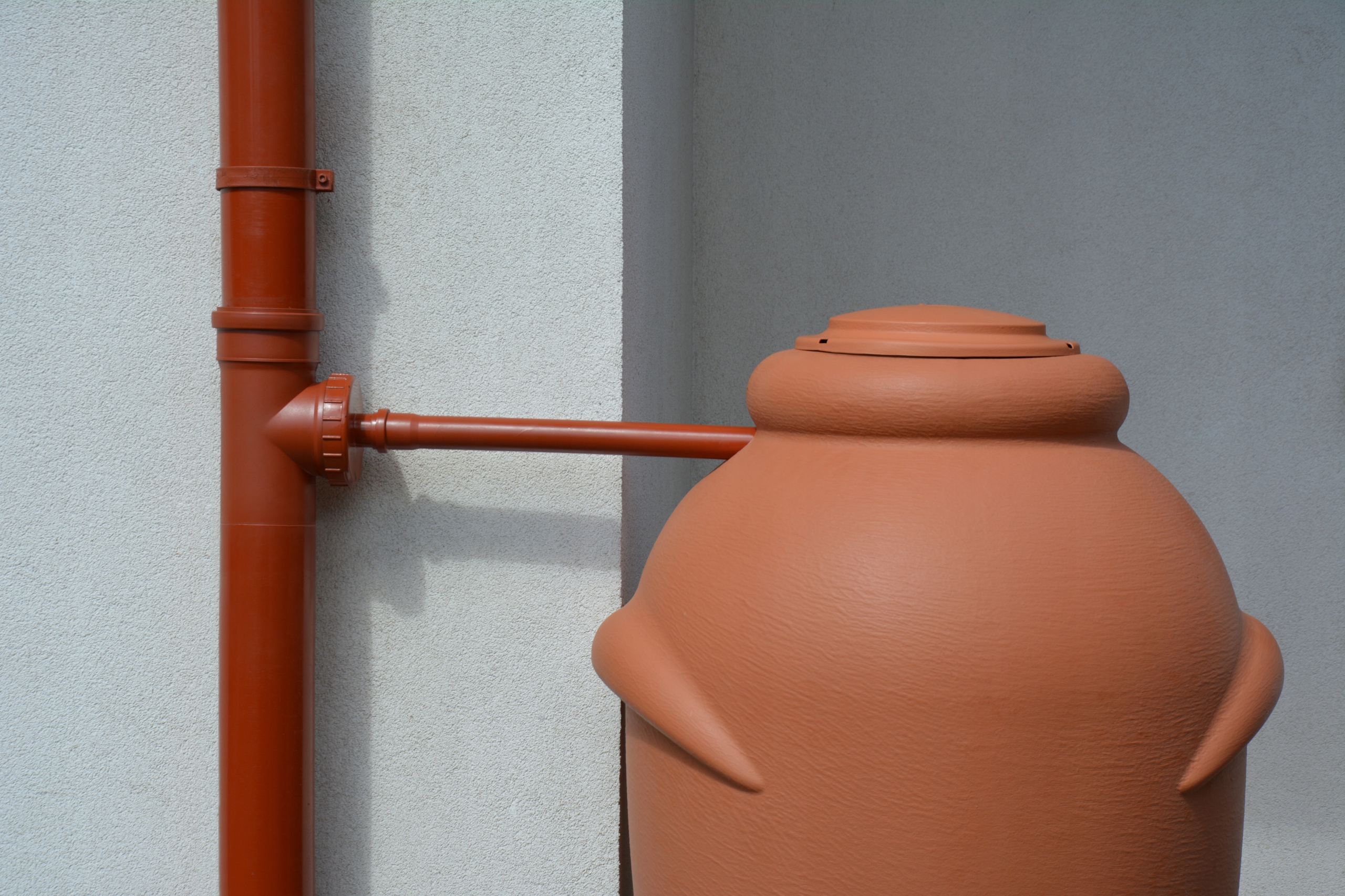 Контейнер для дощової води може бути розташований на вибраній відстані від водостічної труби.