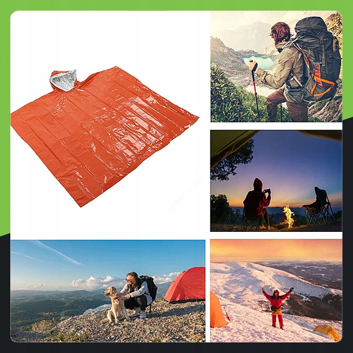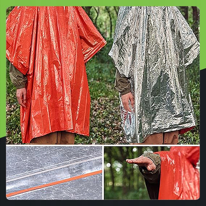 Термонакидка з капюшоном є обов'язковим елементом кожного активного, туристичного та екстреного спорядження. Він поєднує в собі функцію класичного дощовика з теплоізоляційними властивостями фольги NRC, завдяки чому ефективно захищає від дощу, снігу, вітру та втрати тепла.