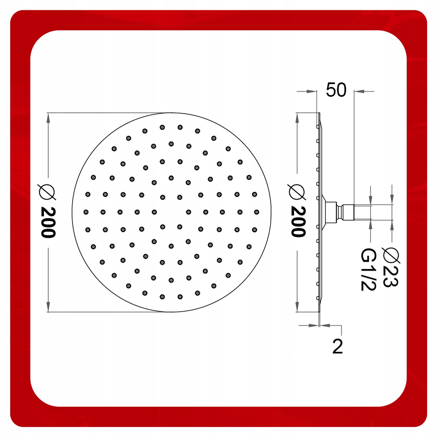 - Діаметр душової кабіни: Ø 200 мм