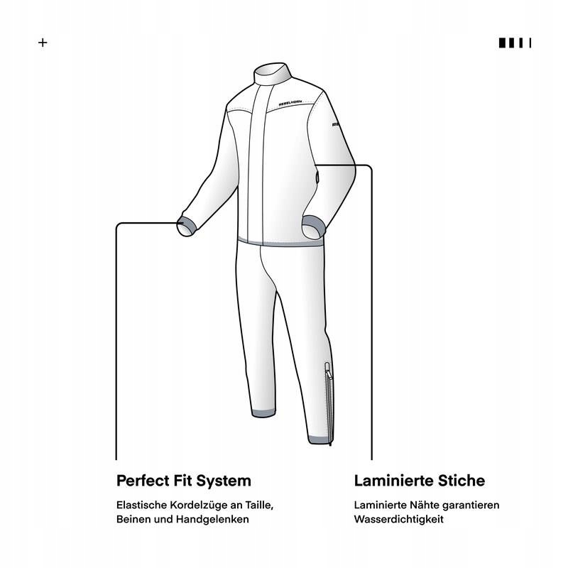 Мотоциклетний дощовик Rebelhorn Rain - це модель із двох частин, виготовлена з поліестеру. Має ламіновані шви для запобігання протіканню. Для підвищення безпеки Rebelhorn Rain оснащений світловідбиваючими вставками на ніжках. Зав’язки забезпечують посадку костюма по фігурі. МАТЕРІАЛ