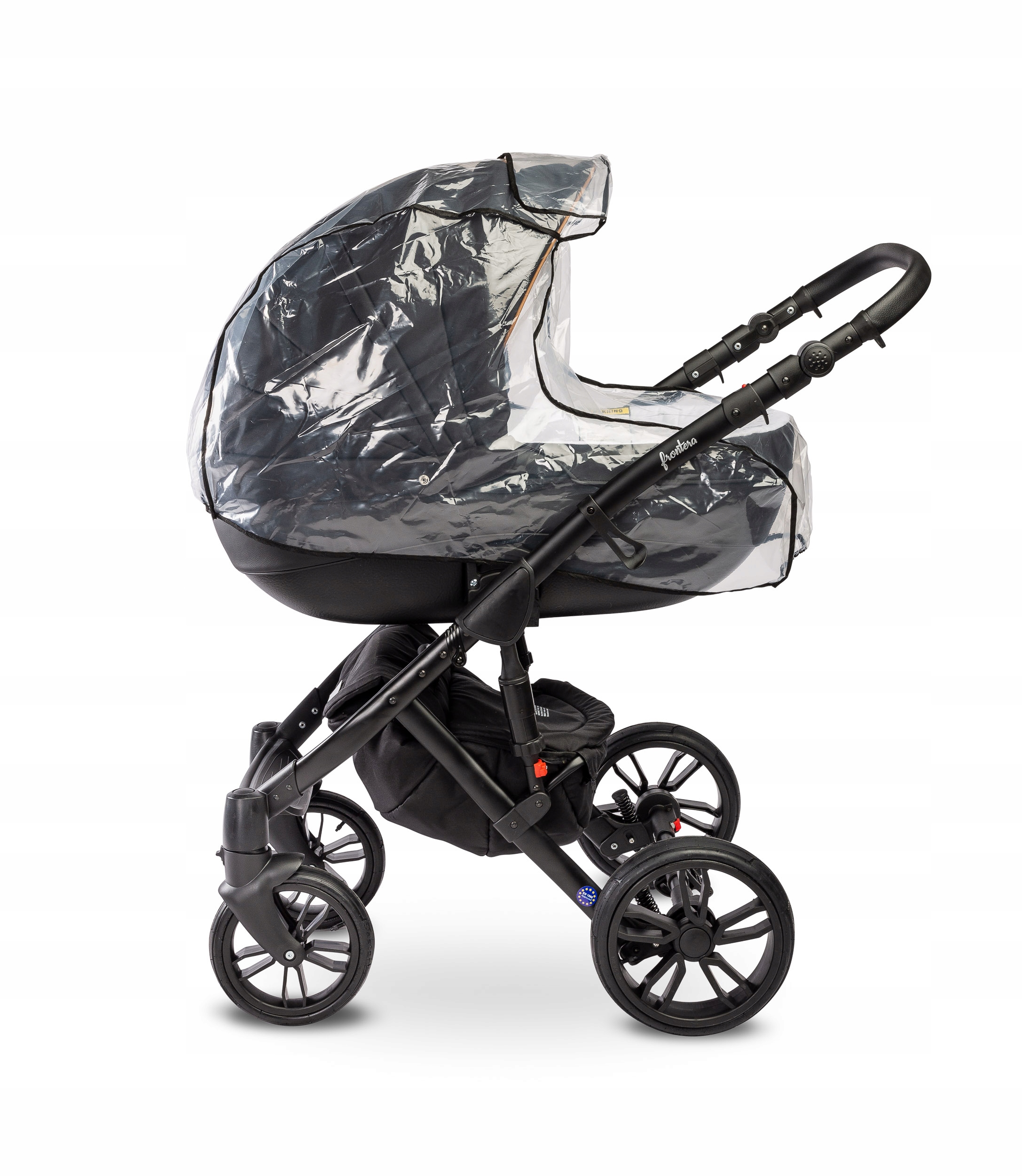 Дощовик захищає коляску та дитину від негоди. Виготовлений з щільної фольги молочного кольору, абсолютно безпечний для дітей, стійкий до високих і низьких температур. Має виріз для контакту з дитиною. Фольга була перевірена Національним інститутом гігієни на якість матеріалів і виготовлення.