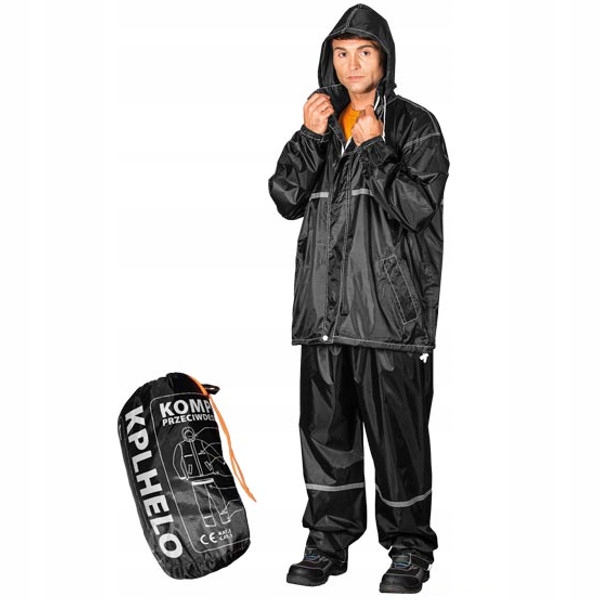 Дощозахисний комплект, що складається з поясних штанів і куртки.