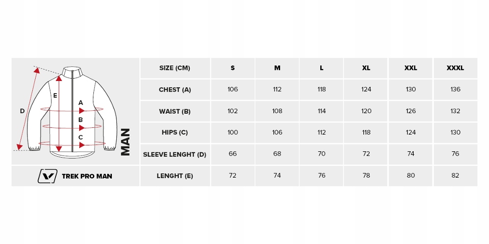 Дощовик Trek Pro створений для чоловіків, які не бояться активності за будь-яких погодних умов. Куртка виготовлена з 2,5-шарового ламінату, який тягнеться в 4-х напрямках, забезпечуючи свободу рухів. Матеріал також має мембрану, яка забезпечує захист від вітру та дощу. Мембрана стійка до 10 000 мм водяного стовпа і має повітропроникність 8 000 г/см2. Крім того, для ще кращого захисту від дощу всі шви проклеєні та використовуються водонепроникні блискавки. Подовжена спинка забезпечує додатковий захист від холоду і запобігає сповзанню куртки вгору під час носіння рюкзака. Внутрішні манжети з отворами для великого пальця дуже допоможуть, якщо ви забудете рукавички. Якщо вам потрібно розстібнути куртку, вам допоможуть пройми. Вони дозволять швидко позбутися від зайвої вологи під час тренувань, додатково захистивши тулуб від намокання. Регульований капюшон підійде на будь-яку голову, навіть якщо в шапці. Жорсткий козирок запобігає потраплянню крапель дощу на обличчя. Всередині куртки є кишеня, куди можна сховати мобільний телефон або інші речі. На його верхній частині є інструкція SOS, яка допоможе в кризових ситуаціях.