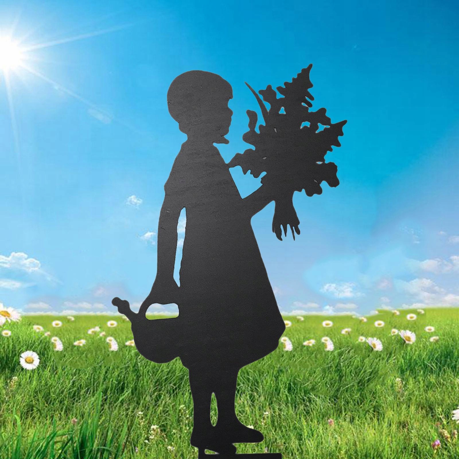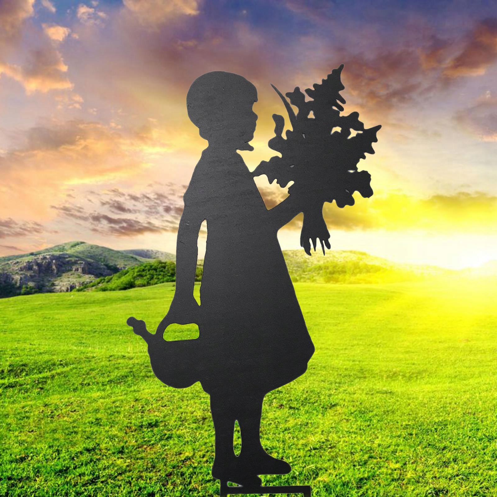 Різноманітні садові прикраси з силуетом дівчини доступні на вибір, дівчинка з квіткою, дівчинка мітла, квітка чайника та стиль лову метелика.