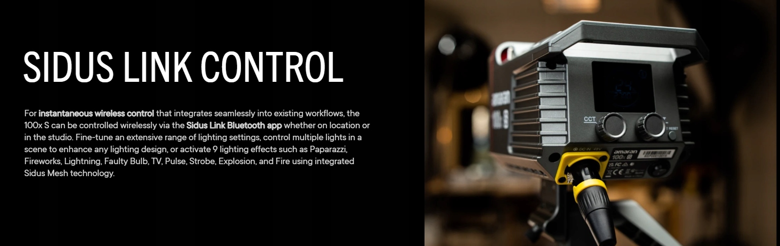 Sidus Link Technology надає режисерам великі можливості, що дозволяє контролювати індивідуальні лампи Amaran та Aputure або групи цих пристроїв за допомогою смартфона. Додаток Sidus Link надасть вам доступ до всіх функцій лампи та дозволить змінювати стандартні налаштування та зберегти власні. Лампи, що працюють у системі Sidus Mesh, можуть з'єднуватися один з одним, що збільшує діапазон усієї мережі, даючи велику свободу при роботі зі світлом.