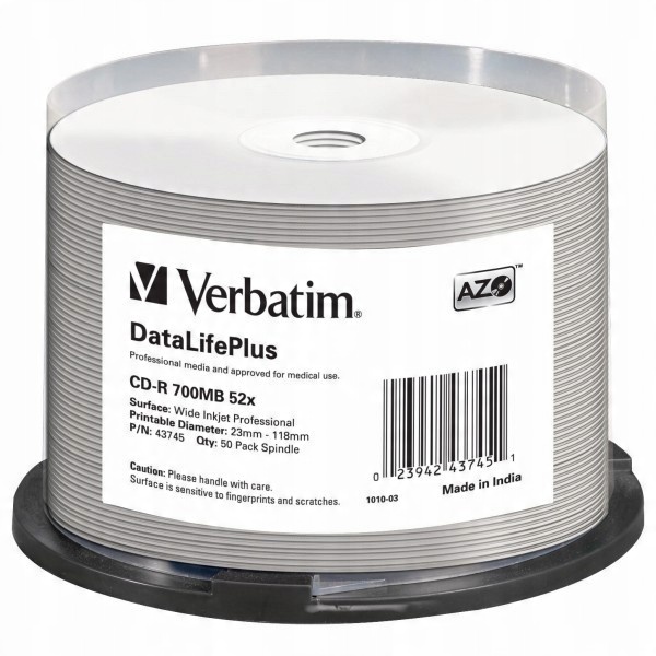 Вербатим CD-R 700MB 52x для друку для друку без ідентифікатора без торта логотип 100 штук