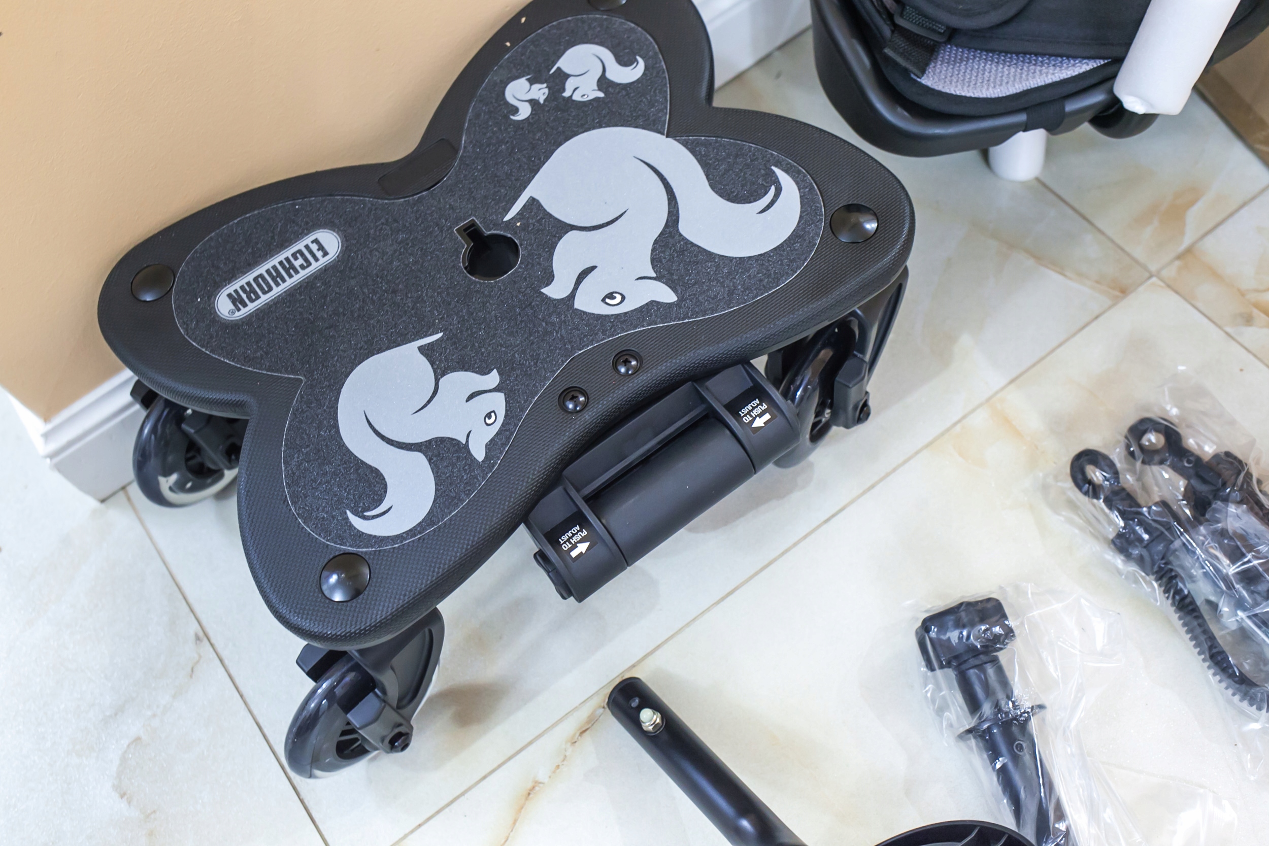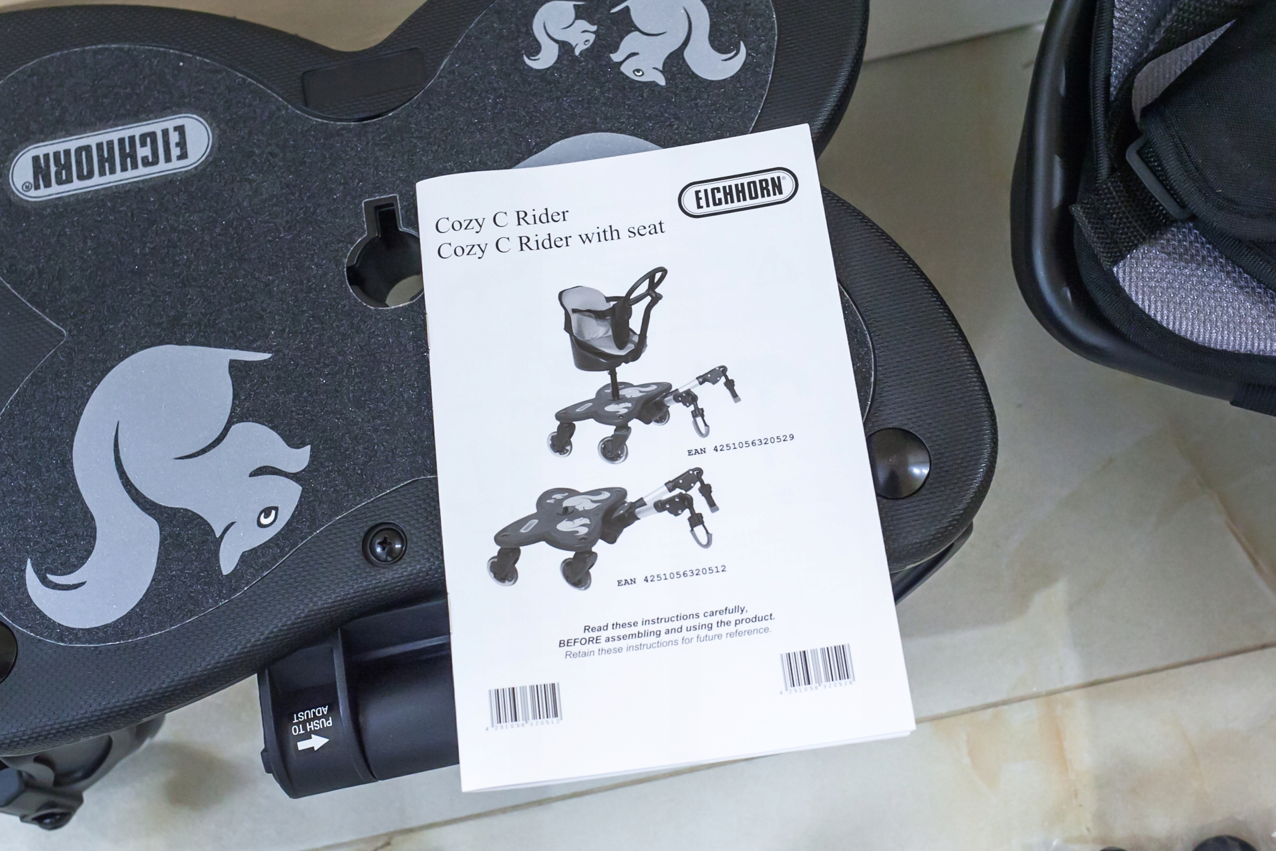 Платформа має протиковзке покриття, а м’які гумові колеса забезпечують додатковий комфорт на вибоїстих дорогах. Cosy C Rider підходить для дітей від 1,5 років і вагою до 25 кілограмів. Як тільки вони сядуть правильно, вони зможуть подорожувати на додатковому ліжку.