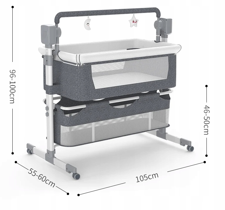 Висота ліжка може бути відрегульована на три градуси , пристосовуючи їх ідеально до висоти дитини та батьків, що полегшує безпечне підйом Тодлера без надмірного згинання . Це також чудове рішення для підтримки близькості до дитини, що важливо, особливо в перші місяці життя.