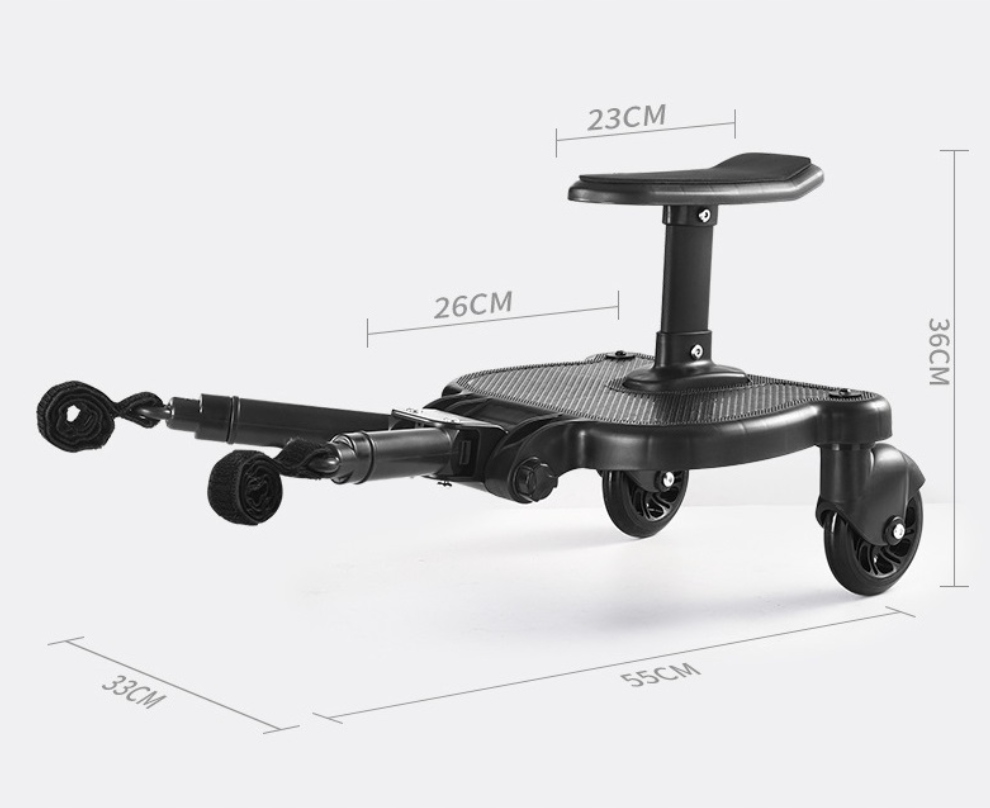 - ДОДАТКОВЕ СИДІННЯ ТА ПРОСТІР: Подовжувач коляски пропонує не тільки додаткове місце для дитини, але й цінний простір для транспортування речей. Коли старша дитина втомився або потребує відпочинку, додаткове ліжко забезпечує йому зручне та безпечне місце для сидіння. Під час походу по магазинах або на прогулянку з великим багажем додаткове ліжко стає практичним місцем для зберігання сумок або інших речей