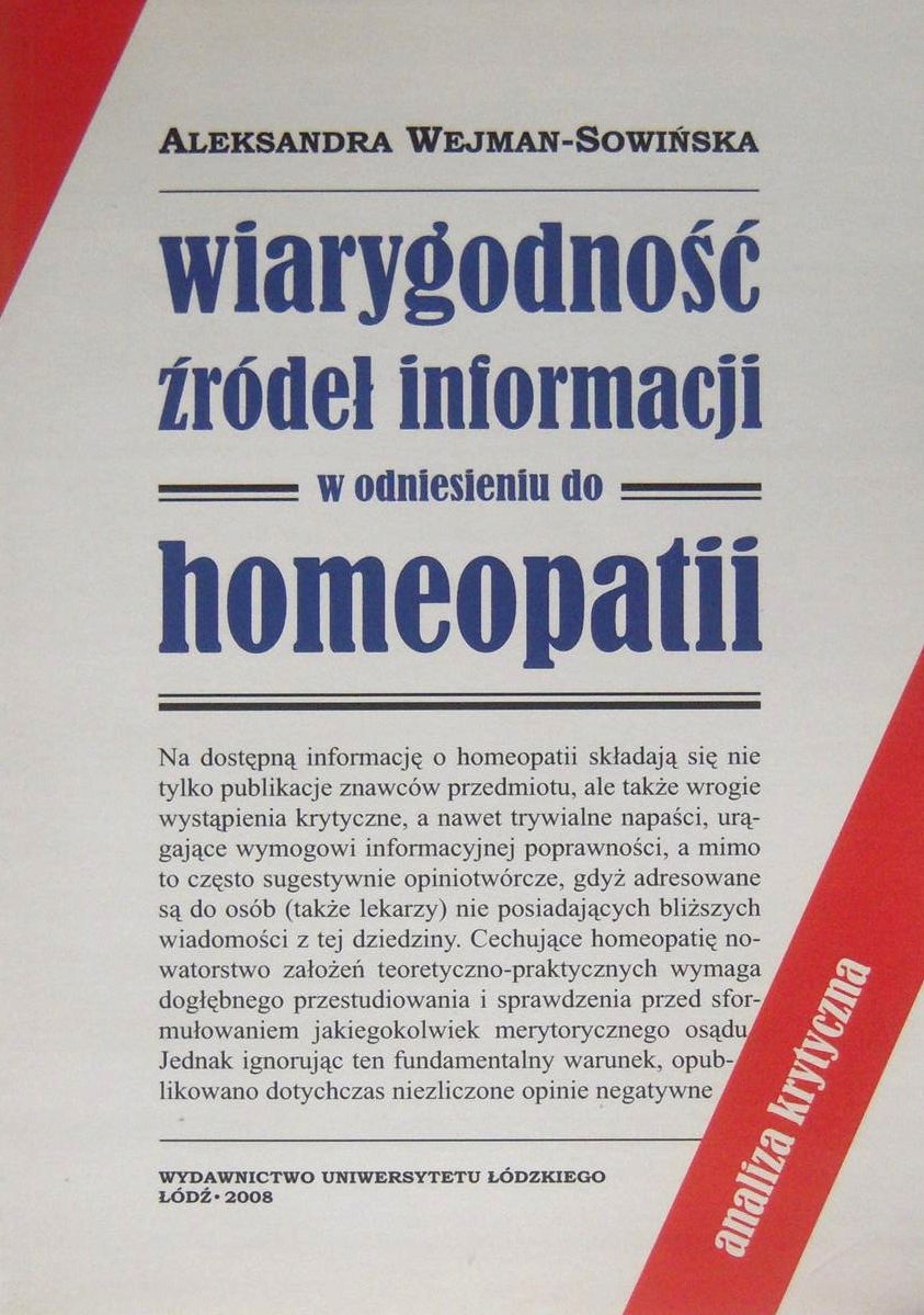 Просматривая «Доверие источников информации о гомеопатии Александер Вейман-Совиньска», вы можете быть уверены, что данный товар из каталога «[rubrica_name]» будет доставлен из Польши и проверен на целостность. В цене товара, указанной на сайте, учтена доставка из Польши. Внимание!!! Товары для Евросоюза, согласно законодательству стран Евросоюза, могут отличаться упаковкой или наполнением.
