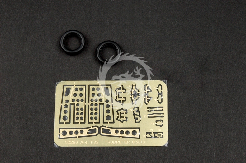 Пластикова модель американського літака Douglas A-4E Skyhawk, Trumpeter, масштаб 1/32. У набір входять: шістнадцять литників з деталями моделі (261 елемент); дві гумові шини та дві металеві частини стійок шасі; лист металу з елементами фототравлення; спробуйте листи наклейок; інструкції, модель у масштабі 1/32.