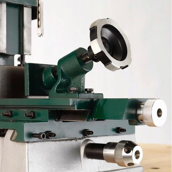 Можливість регулювання розсувного механізму шляхом регулювання напрямних забезпечує високу точність обробки. Легкий доступ до посібників. Важливою особливістю столу є важкий, масивний затиск, який найчастіше зустрічається в більш промислових машинах. Це дозволяє безпечно і надійно затискати елемент під час обробки - виключаючи його найменші рухи.