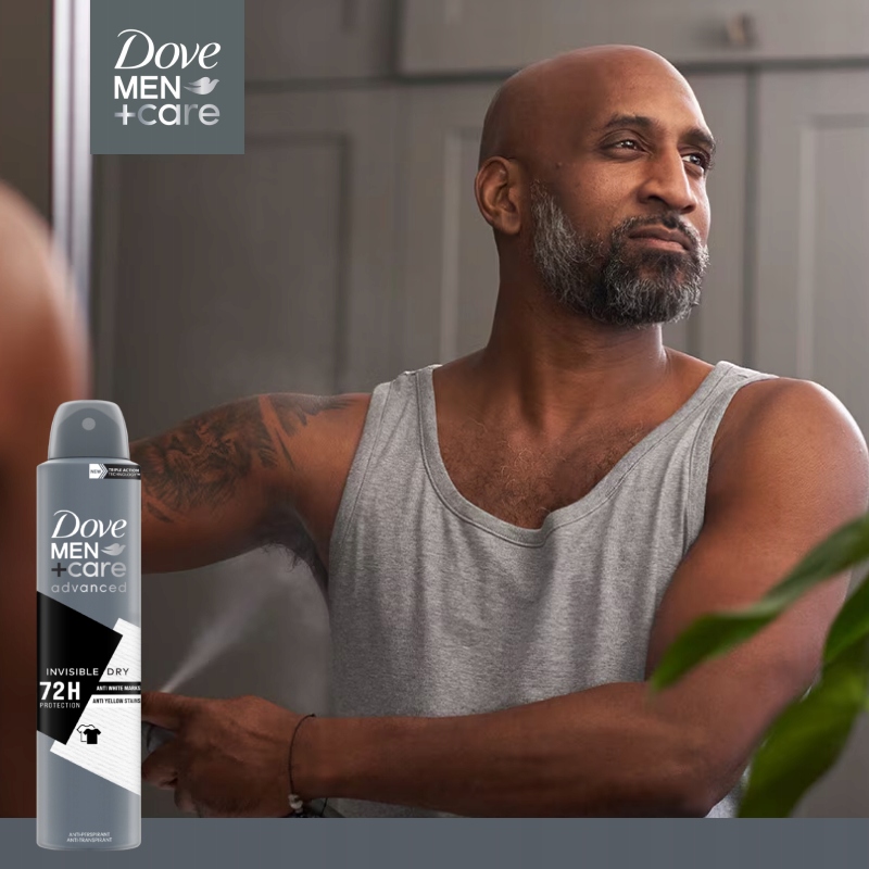 Назавжди попрощайтеся з плямами від дезодоранту завдяки аерозолю-антиперспіранту Dove Men + Care Advanced Care Invisible Dry - він не залишає білих слідів