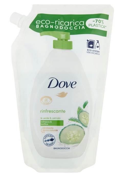 Dove Rinfrescante - освіжаючий і тонізуючий гель для душу з ароматом огірка і зеленого чаю.